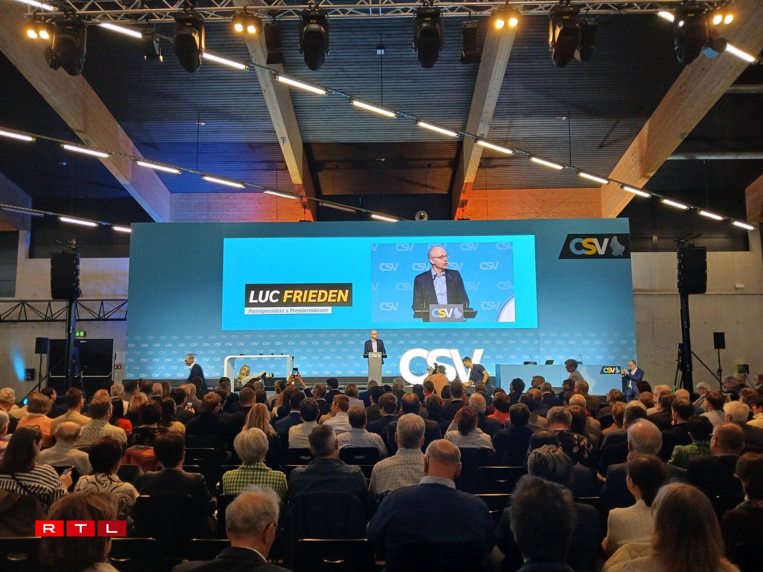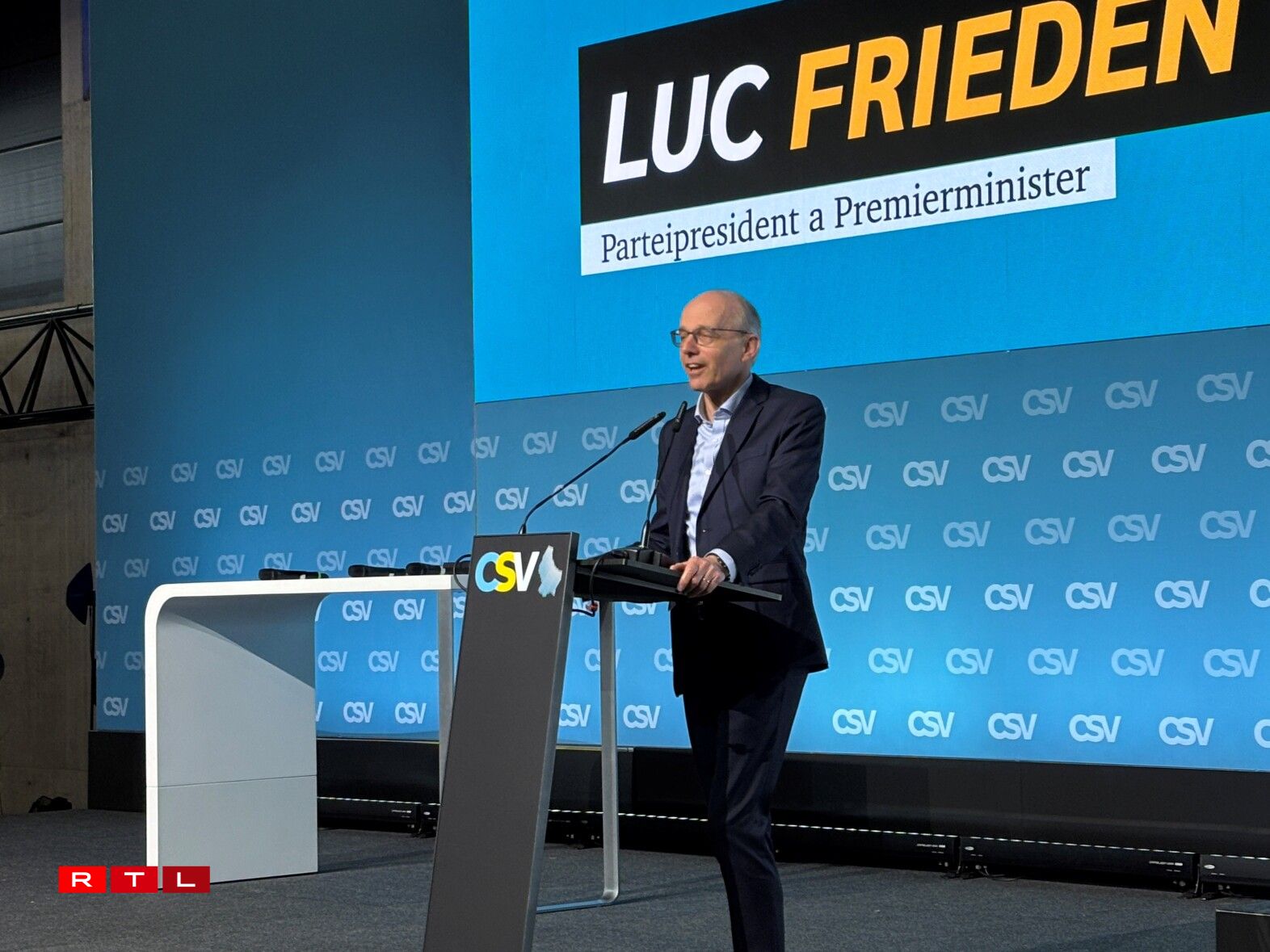 Vun den 342 stëmmberechtegte Delegéierten hunn 88,25 Prozent dem Luc Frieden, deen den eenzege Kandidat fir de Poste vum Parteipresident war, hir Stëmm ginn. Virun zwee Joer waren et nach 96,25 Prozent. A senger Ried virun der Wal hat de Luc Frieden ënnerstrach, datt et an enger Demokratie normal a gutt wier, datt et Kritik un der Regierungspolitik gëtt, mee “Dat heescht net, datt wann eng Decisioun kommentéiert gëtt, wa se kritiséiert gëtt, datt mir onbedéngt vun eisem Wee sollen ofkommen. Eist Zil ass et, déi Prinzippien, un déi mir gleewen, déi breet Vollekspartei vun der politescher Mëtt, déi Wäerter, fir déi mir astinn, eis fir déi anzesetzen. An dann um Wee dohinner natierlech nozelauschteren, wat anerer soen. Well och dat ass de Räichtum vun eisem Land.”