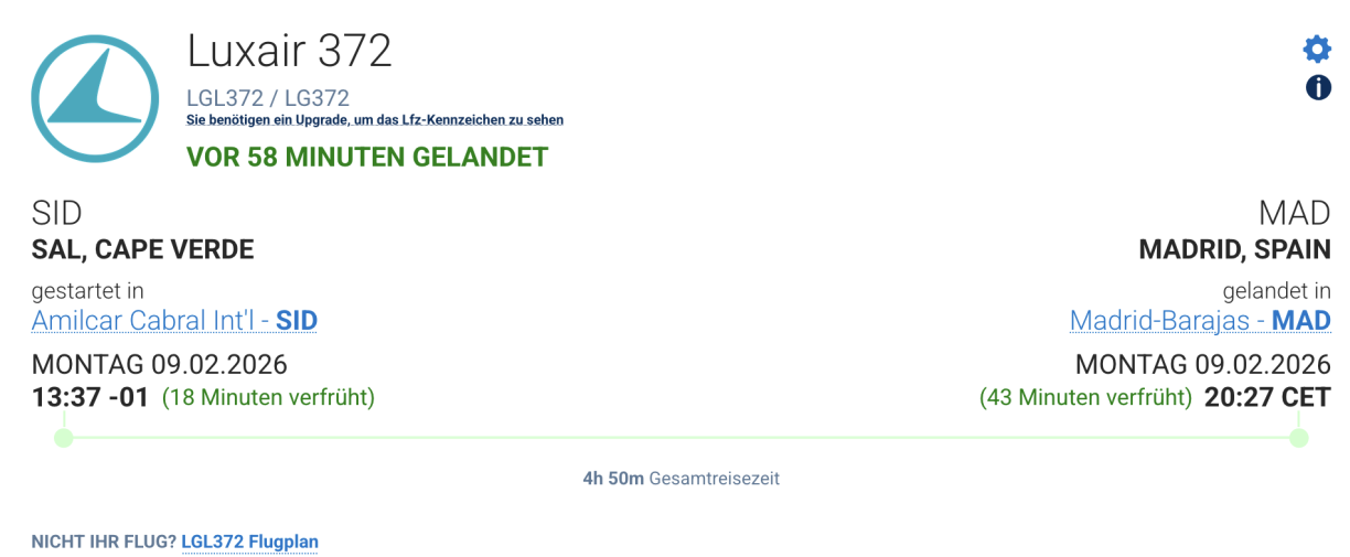 Wärend dem Fluch ass e Rass an der Cockpit‑Fënster festgestallt ginn. D’Boeing vum Typ 737‑700 vun der Luxair ass sécher zu Madrid gelant, dat ëm 20.27 Auer e Méindeg den Owend.
