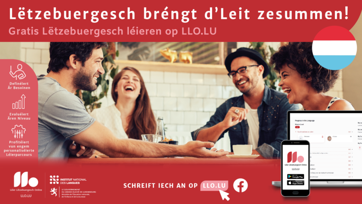 Den 9. September 2022 huet de Minister fir Educatioun, Kanner a Jugend, Claude Meisch, zesumme mat der Direktesch vum Institut national des langues (INL), Maisy Gorza, op enger Pressekonferenz déi nei Léierplattform fir d’Lëtzebuerger Sprooch LLO.LU virgestallt. Mat dëser neier Plattform fir Lëtzebuergesch online ze léieren, gëtt de Stellewäert vun eiser Sprooch och international valoriséiert an hire Gebrauch an der Zukunft promouvéiert. Mam LLO.lu, deen ab der Rentrée am September 2022 weltwäit gratis zougänglech ass, gëtt den Interessi un der Lëtzebuerger Sprooch a Kultur an eiser moderner Gesellschaft oprechterhalen an den Zougrëff op qualitatiivt Léiermaterial garantéiert.