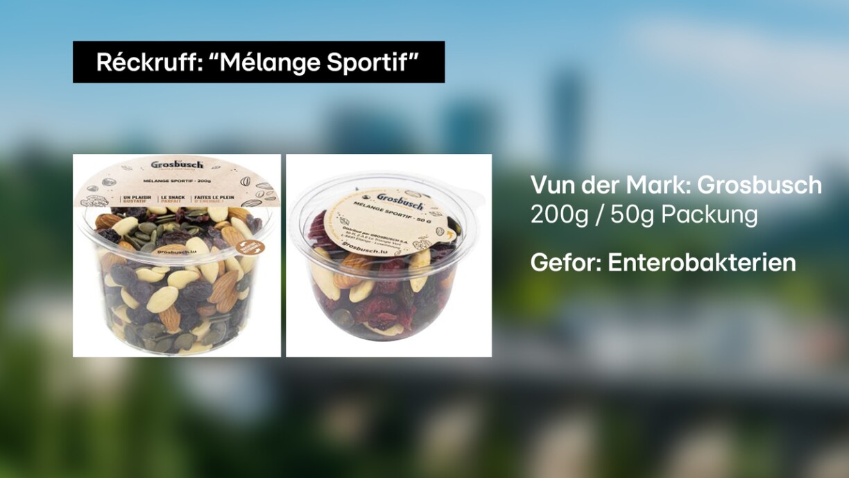 Vum Réckruff betraff sinn d’Produite “Mélange Sportif” an de Verpackunge vu 50 an 200 Gramm.