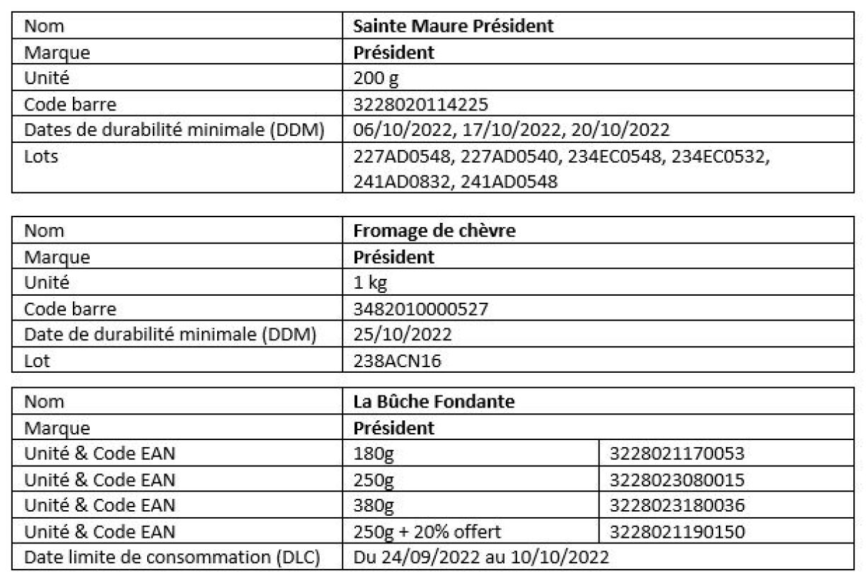Betraff sinn d’Produiten “Sainte Maure”, “Fromage de chèvre” an “La Bûche Fondante”. Déi metalle Stécker an de betraffene Kéis-Zorte kënnen Erstécken oder ënnerlech Verletzungen ervirruffen.