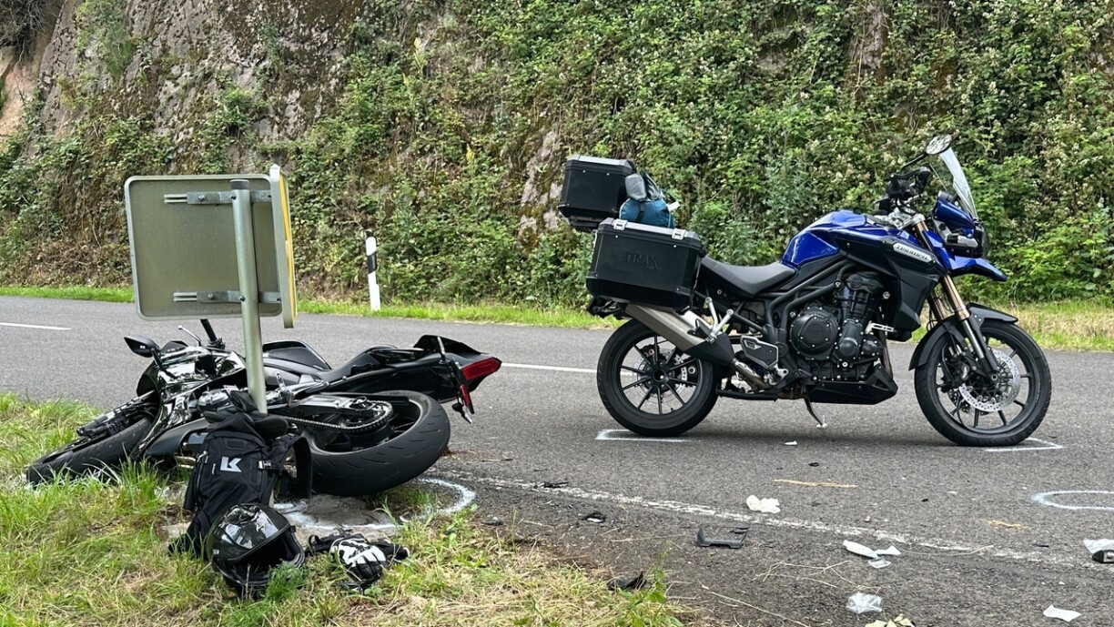 Wéi d’Police matdeelt war ee Motorradschauffer warscheinlech mat erhéichter Vitess ënnerwee, wou en an enger Kéier op der N27 zwee aner Motorrieder, déi him entgéintkoumen, ze pake krut.