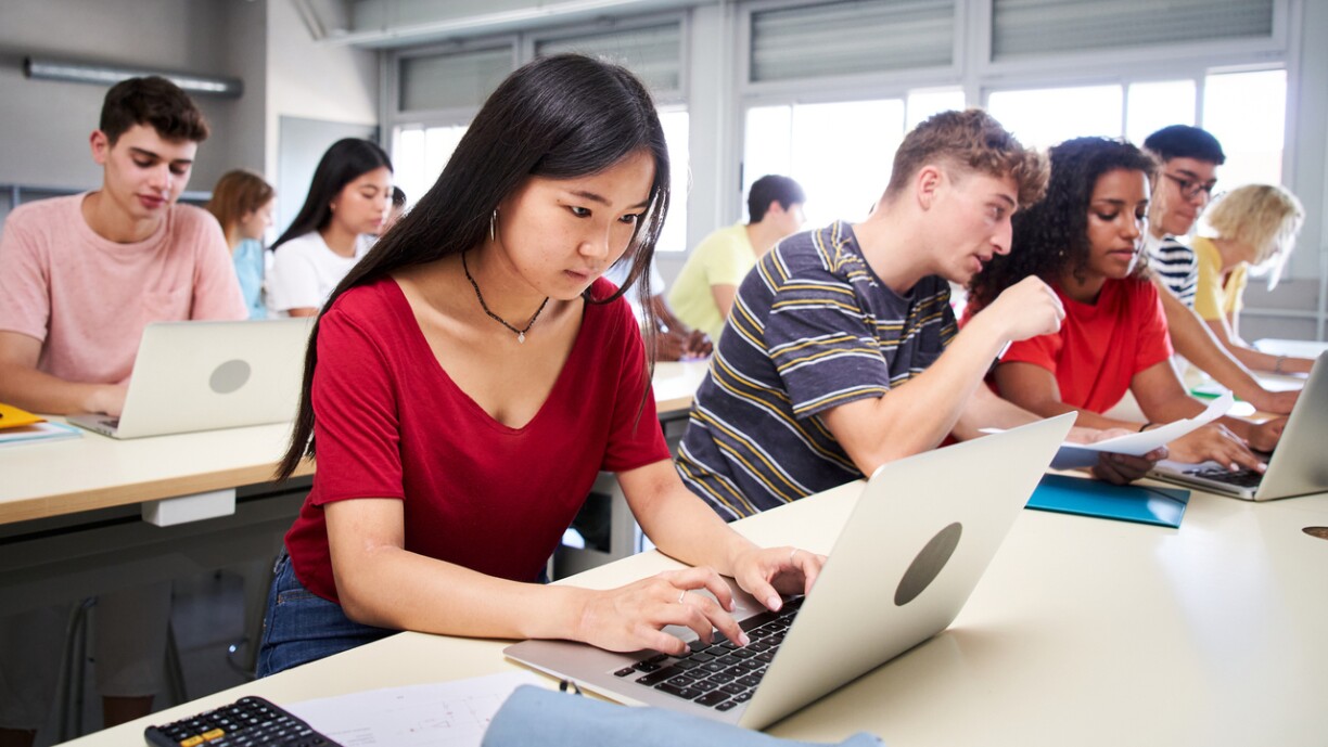 Dës Studente géingen an engem Co-working-Espace an der Stad ënner kommen.
