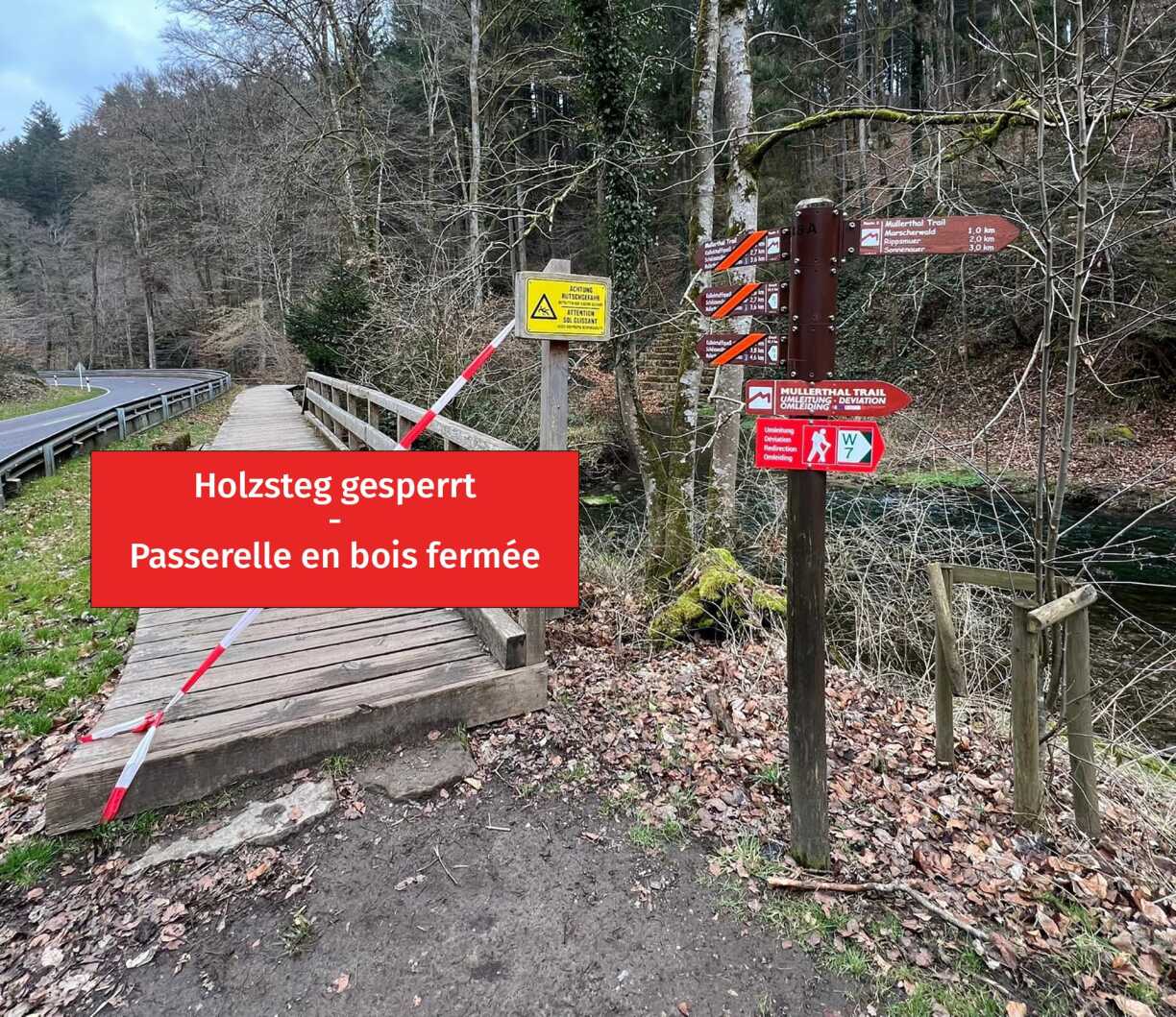 Den Holzstee iwwer ronn 600 Meter wier duerch “déi fiicht an däischter Ëmgéigend vum Bësch” ëmmer méi faul a geféierlech ginn. An och déi sëllege Reparaturen an de leschte Joren hätte just kuerzfristeg gehollef. D’Naturschutzverwaltung ANF huet dowéinst decidéiert, datt “d’Sécherheet vum Stee net méi garantéiert” ka ginn.