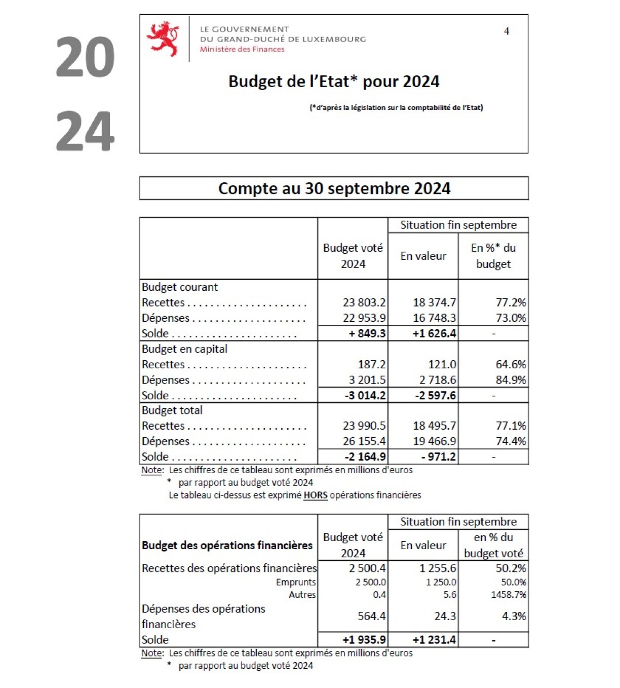 De Gilles Roth huet en Dënschdeg de Moien den zoustännege Chamberkommissiounen d’Situatioun vun de Staatsfinanzen op den 30. September matgedeelt. D’Recettë sinn op deen Datum am Verglach zu 2023 ëm 14 Prozent geklommen – wat haaptsächlech doru läit, datt d’Cargolux hir Steieren aus de fir si wirtschaftlech gudde Covid-Jore bezuelt huet.