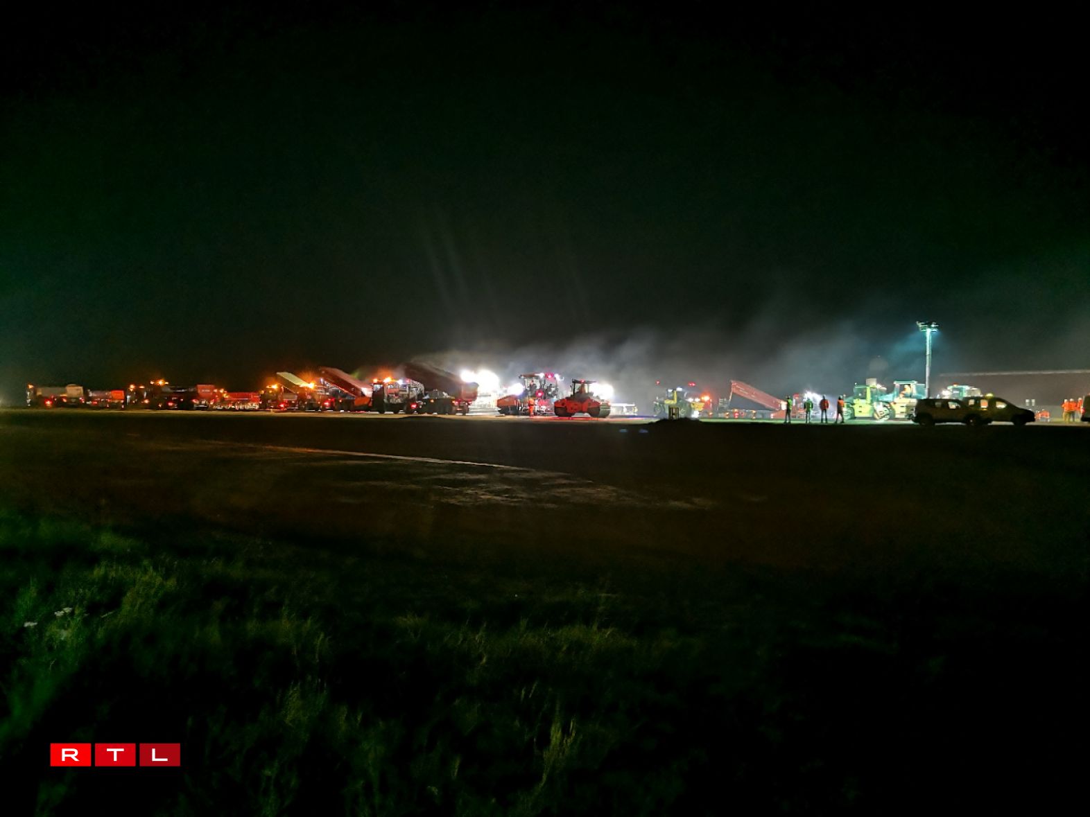 Speziell ass, datt aus wirtschaftleche Grënn de Flughafen net ka wéi soss am Ausland fir 4 Méint zougemaach ginn. Lëtzebuerg huet eebe just eng Pist. Dat bedeit, datt am Dag weider Fligere starten a landen. Nuets gi jee no Dag 200 bis 300 Aarbechter de Rhythmus un.