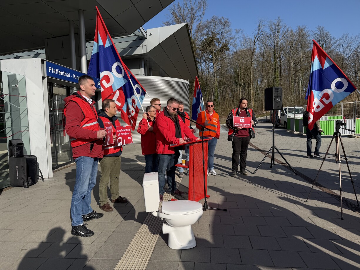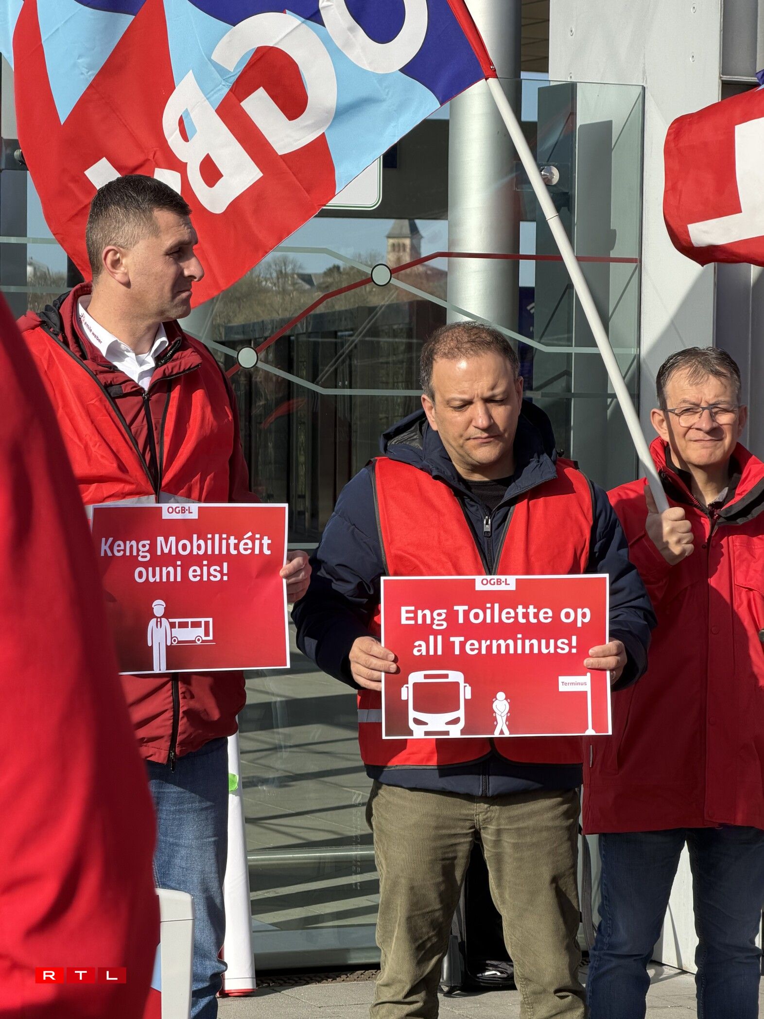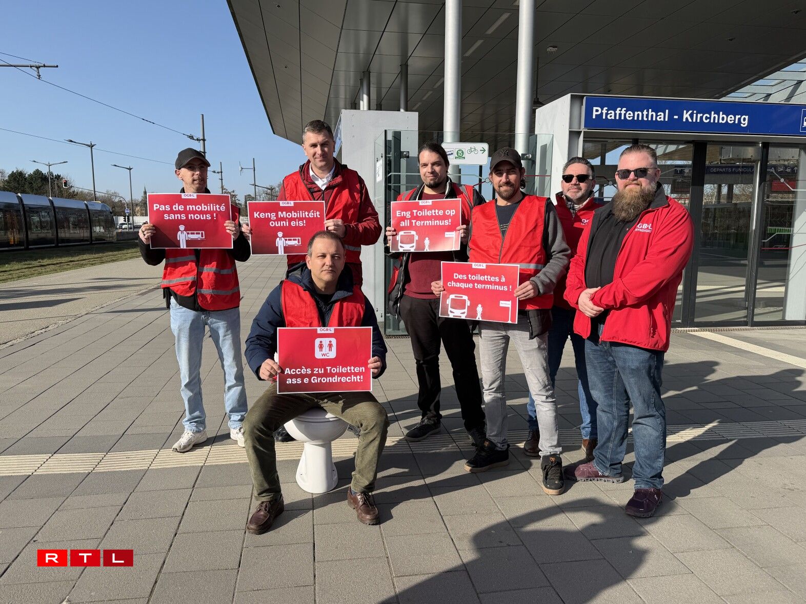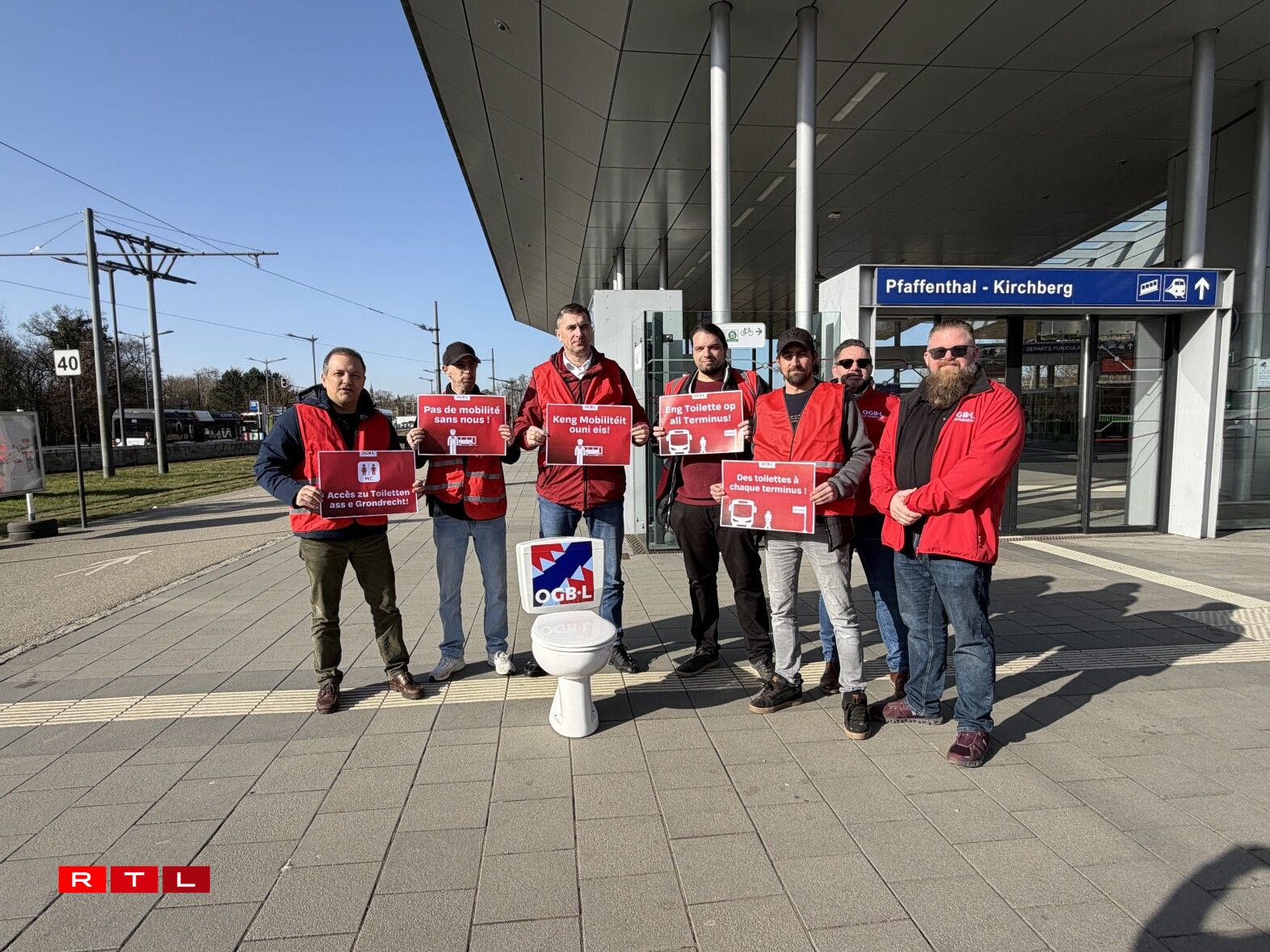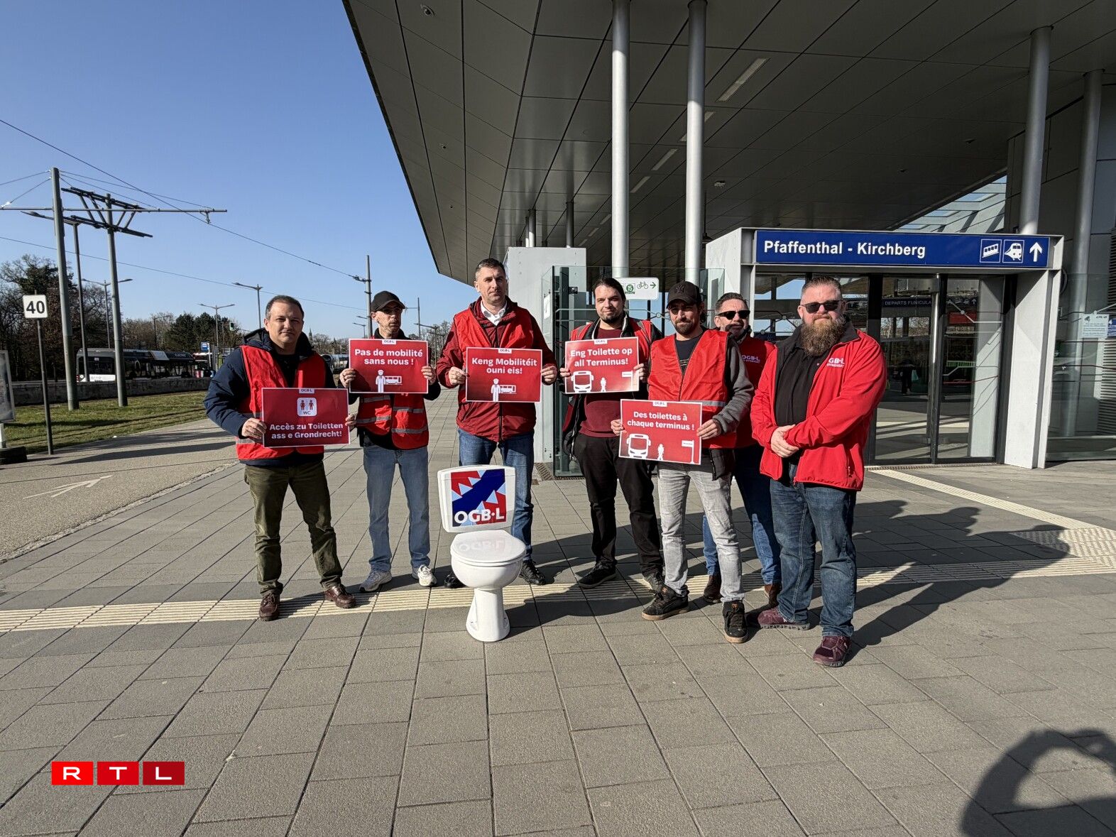 Den OGBL huet seng Fuerderung, dass op all Terminus richteg, propper an accessibel Toiletten musse sinn, en Donneschdeg de Moien op engem Protestpiquet um Arrêt virun der Rouder Bréck um Kierchbierg widderholl. Mat Bléck op den Transportministère.