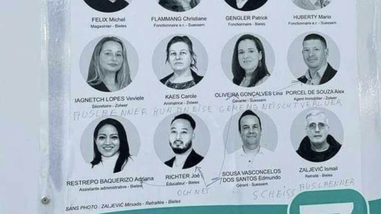 Onbekannter hu Walplakater mat rassisteschen Äusserunge beschmiert. D’Partei Fokus verurteelt dëst Verhalen an engem Communiqué “op dat Schäerfst” a wäert et eegenen Aussoen no net dobäi beloossen. E Méindeg wäert d’Partei vu Suessem ëm de Frank Engel eng Plainte bei der Police deposéieren.