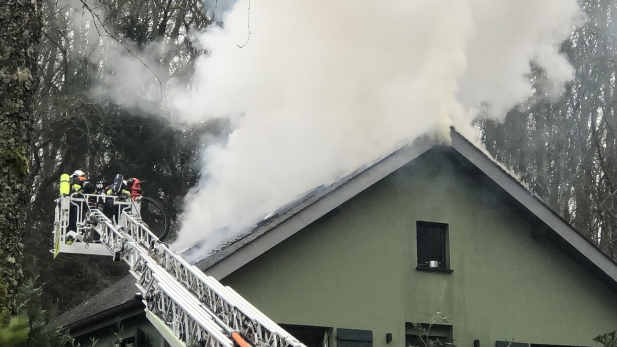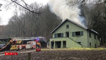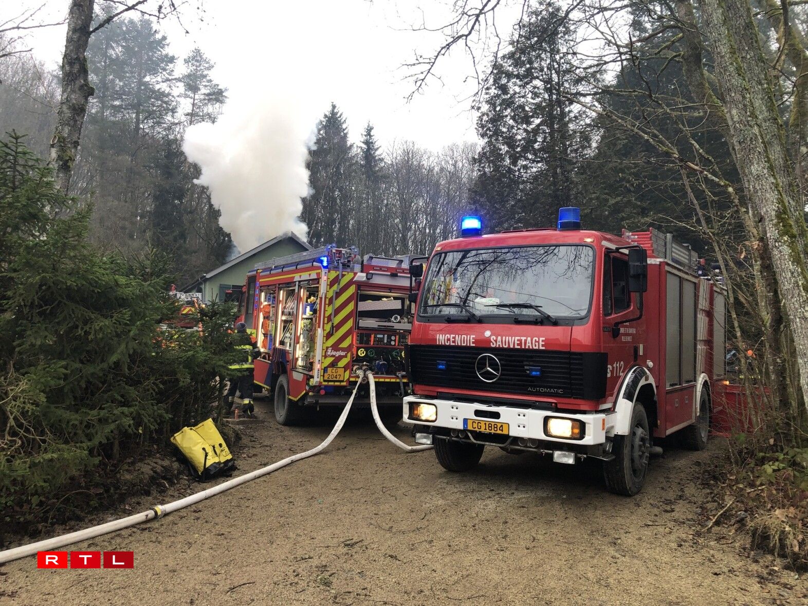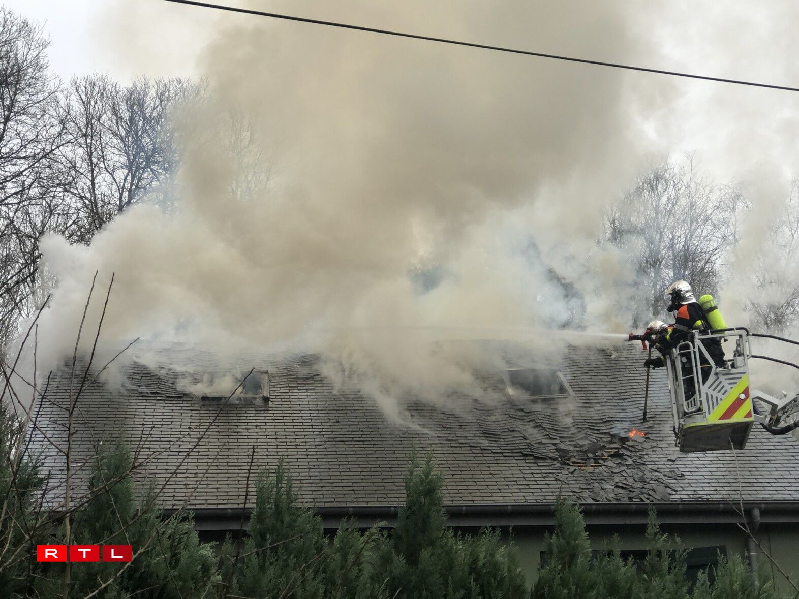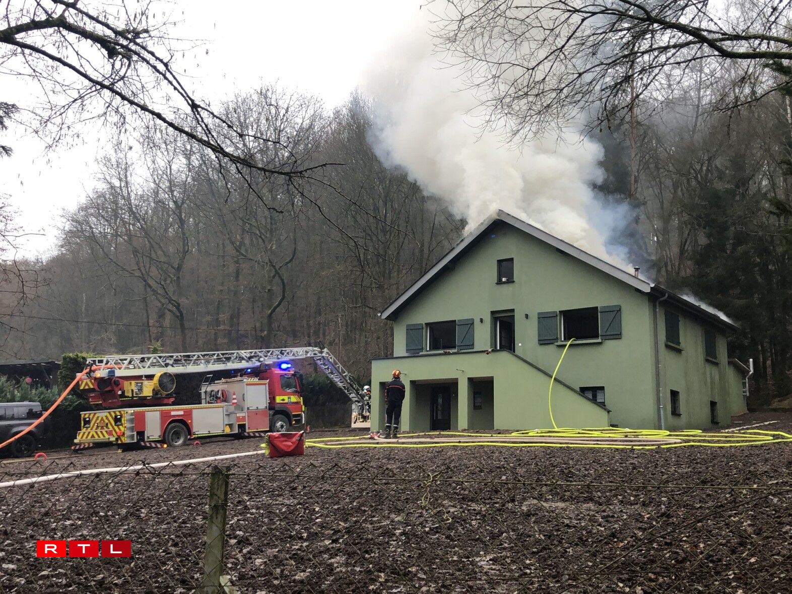En Haus ass hei a Brand geroden. Éischten Informatiounen no schéngt de Brand ënnert dem Daach ausgebrach ze sinn. Wéi et vum CGDIS heescht, wier keng Persoun blesséiert ginn.