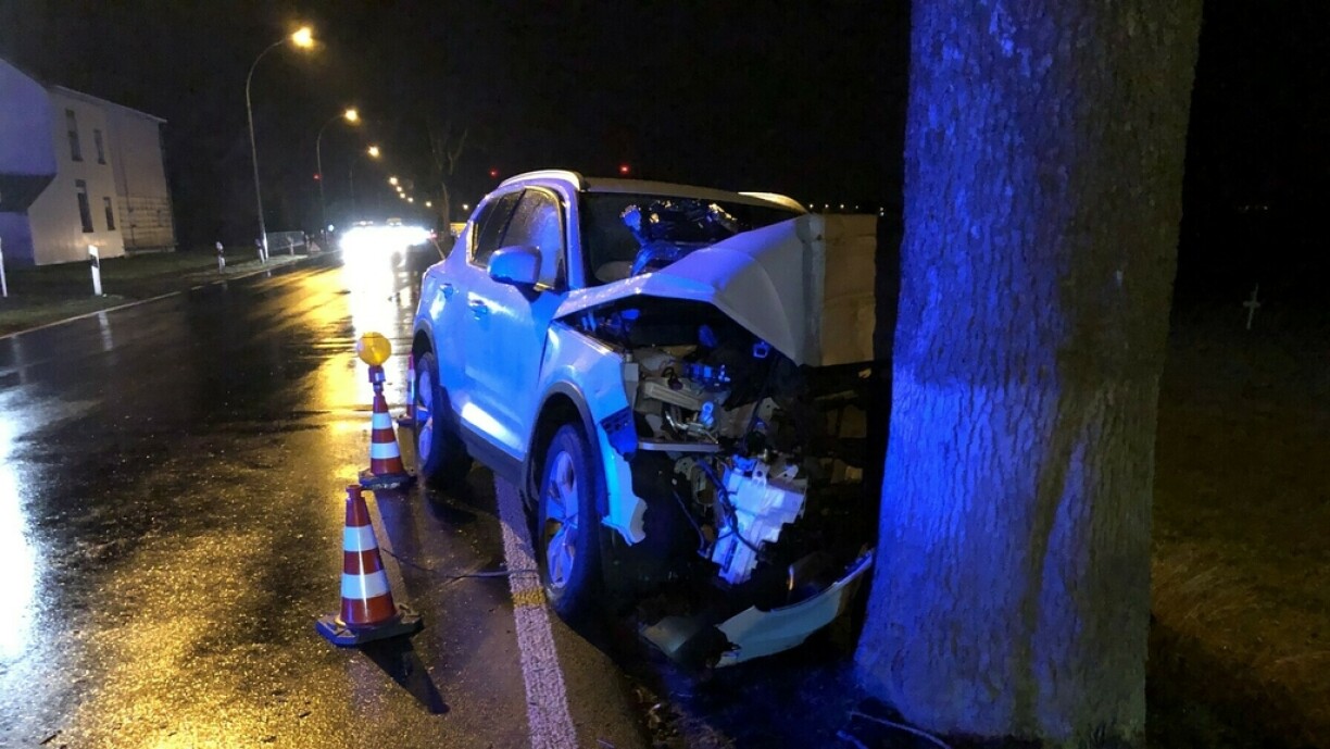 E Chauffer hat hei, aus bis ewell nach ongekläerter Ursaach, d’Kontroll iwwert säin Auto verluer a war mat dësem frontal an e Bam gerannt. Hie gouf fir eng Kontroll an d’Spidol bruecht. Wéi aus dem Bulletin vum CGDIS ervirgeet, gouf si net blesséiert.