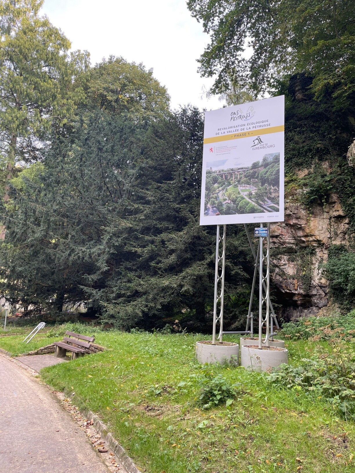 Esou d'Erklärung vun der Ëmweltministesch. 160 Beem misste fort, hat et am Ufank vun den Aarbechten geheescht a bei deem Chiffer soll et bleiwen. D’Reschter, also d’Wuerzelen, gi laanscht de Laf vun der Péitruss nees agegruewen, fir dat Ganzt esou natierlech wéi méiglech ze halen an esou och der Déierewelt eng Chance ze ginn.