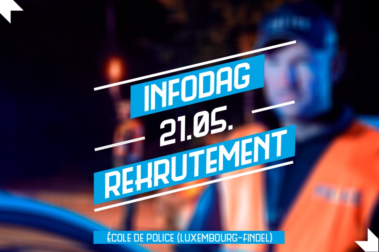 D’Plaze sinn allerdéngs limitéiert: Bis den 18. Mee kann ee sech per Mail bei der Adresse infodag@police.etat.lu mat sengem Numm a Virnumm umellen.