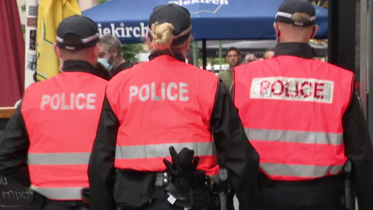 D’Police war um Wee an d’Rives de Clausen, fir hei Kontrollen ze maachen, wéi op engem Busarrêt e Mann op sech opmierksam gemaach huet, andeems e wëll ronderëm gestikuléiert huet. Et stoungen e puer Persoune ronderëm hien an hu probéiert en ze berouegen, wat hinnen awer net gelongen ass.
