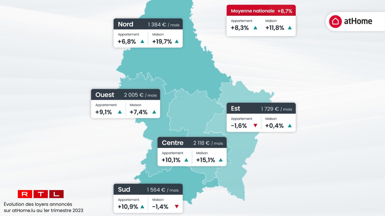 Laang Jore sinn d’Präisser um Lëtzebuerger Immobiliësecteur konstant an d’Luucht gaangen. Ma wéi den Immobilieportal atHome en Dënschdeg matdeelt, sinn d’Präisser fir Haiser an Appartementer am éischten Trimester vum Joer 2023 gefall. Op ee Joer gekuckt wier et eng Baisse vu 5,1 Prozent, 5,2 Prozent bei den Haiser a 5,0 Prozent bei den Appartementer.