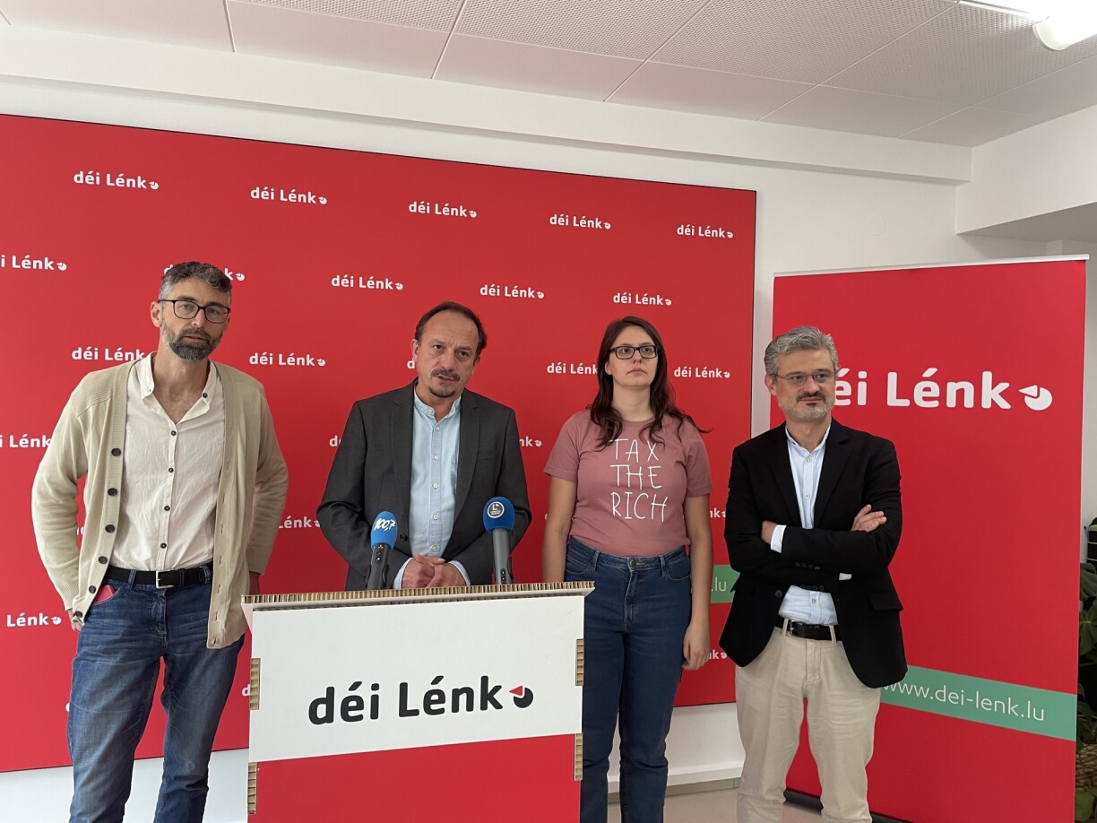 * Mat ugesicht sinn déi zwee Deputéiert vun déi Lénk Marc Baum an David Wagner, mee awer och d’Parteispriecher Carole Thoma an de Gary Diderich. (An enger éischter Versioun hate mer geschriwwen, datt de Gary Diderich an d’Carole Thoma an zwee Joer Deputéiert ginn. Dat ass just fir de Gary Diderich de Fall.)