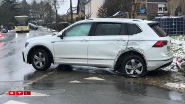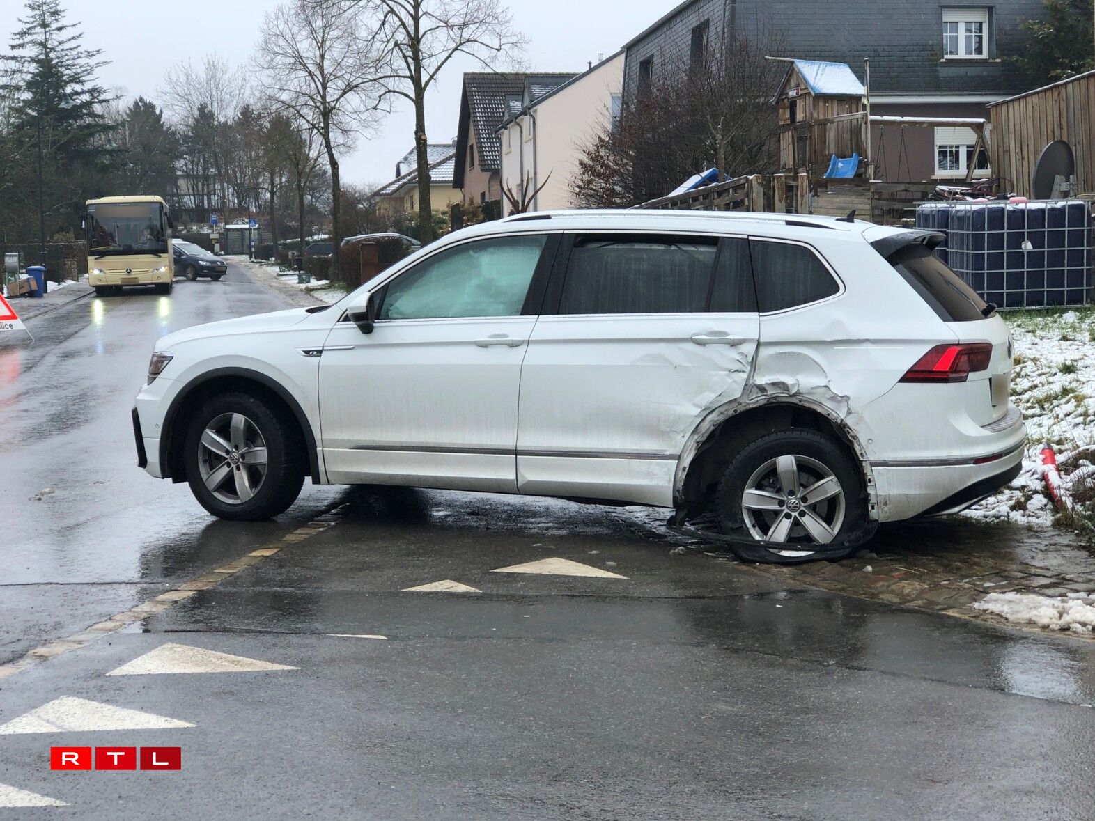 Eng weider Kéier Auto géint Bus hat et da géint 7.30 Auer zu Waldbëlleg geheescht. De Bus war hei an enger Kéier an d’Rutsche komm a krut dobäi en Auto ze paken. Duerno war de Bus dann nach an d’Mauer vun engem Virgäertche gerannt, éier en un d’Stoe koum.