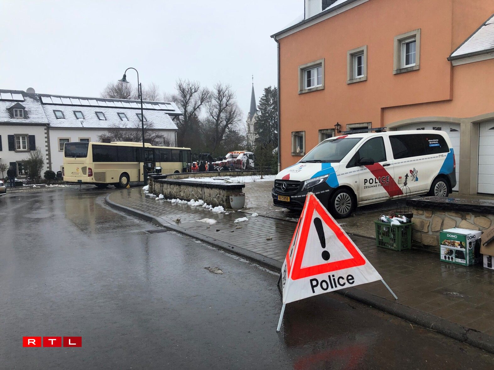 Duerch eng Partie Accidenter hunn awer och e puer Stroosse misste gespaart ginn. D’Rue Basse zu Zolwer war kuerz no 7 Auer fir den Trafic zougemaach ginn, nodeems et zu enger Kollisioun tëscht engem Auto an engem Camion koum. Bei Géisdref war e Bus, an deem keng Passagéier souzen, an de Gruef geroden. Och hei hat d’Streck misste gespaart ginn.