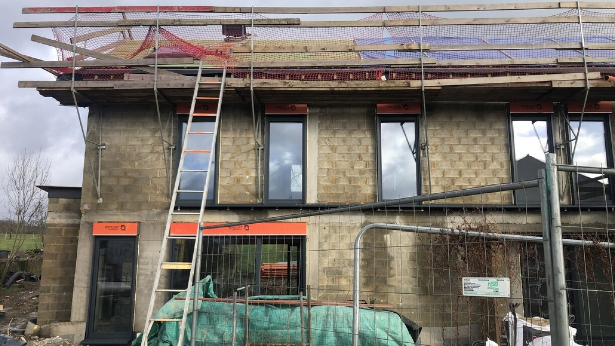 De Rettungshelikopter huet misse landen, nodeems do en Aarbechter vun engem Daach 6,5 Meter an d’Déift gefall war a schro verwonnt gouf. De Mann ass awer net a Liewensgefor. D’ITM ënnersicht d’Ëmstänn vum Accident. Fir datt den Helikopter lande konnt, war d’N12 op där Plaz fir den Trafic gespaart.