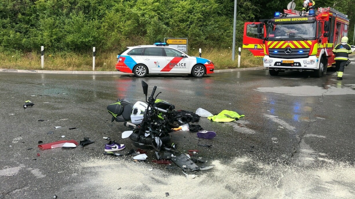 De Motocyclist war a Richtung Leideleng ënnerwee an hat ze spéit gesinn, dass e Minibus, deen him entgéint koum, an d’Rue Roudebësch ofgebéit ass. Doduerch ass en säitlech hannen an de Bus gerannt. Wéi d’Police bestätegt, gouf de Motocyclist schwéier blesséiert an d’Spidol bruecht. De Stater Samu war op der Plaz, grad ewéi d’Stater Pompjeeën an eng Ambulanz vu Mamer.