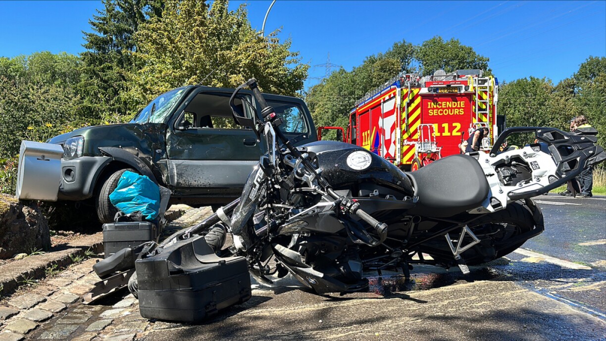 Wéi d’Police mellt, waren hei en Auto an e Moto dra verwéckelt. D’Strooss war blockéiert, wouduerch et a béide Richtungen an deem Beräich gestaut huet. Géint 15.30 Auer ass d’Strooss awer nees fir de Verkéier opgaangen.