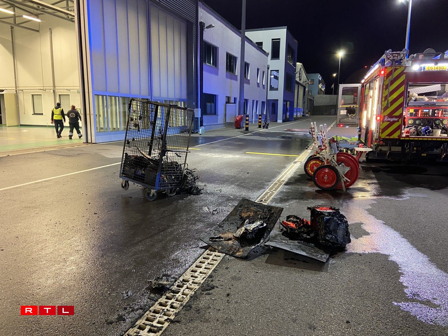 Um 10 Auer war d’Police Judiciaire op der Plaz. D’Ermëttlunge wéinst der Brandursaach lafen.