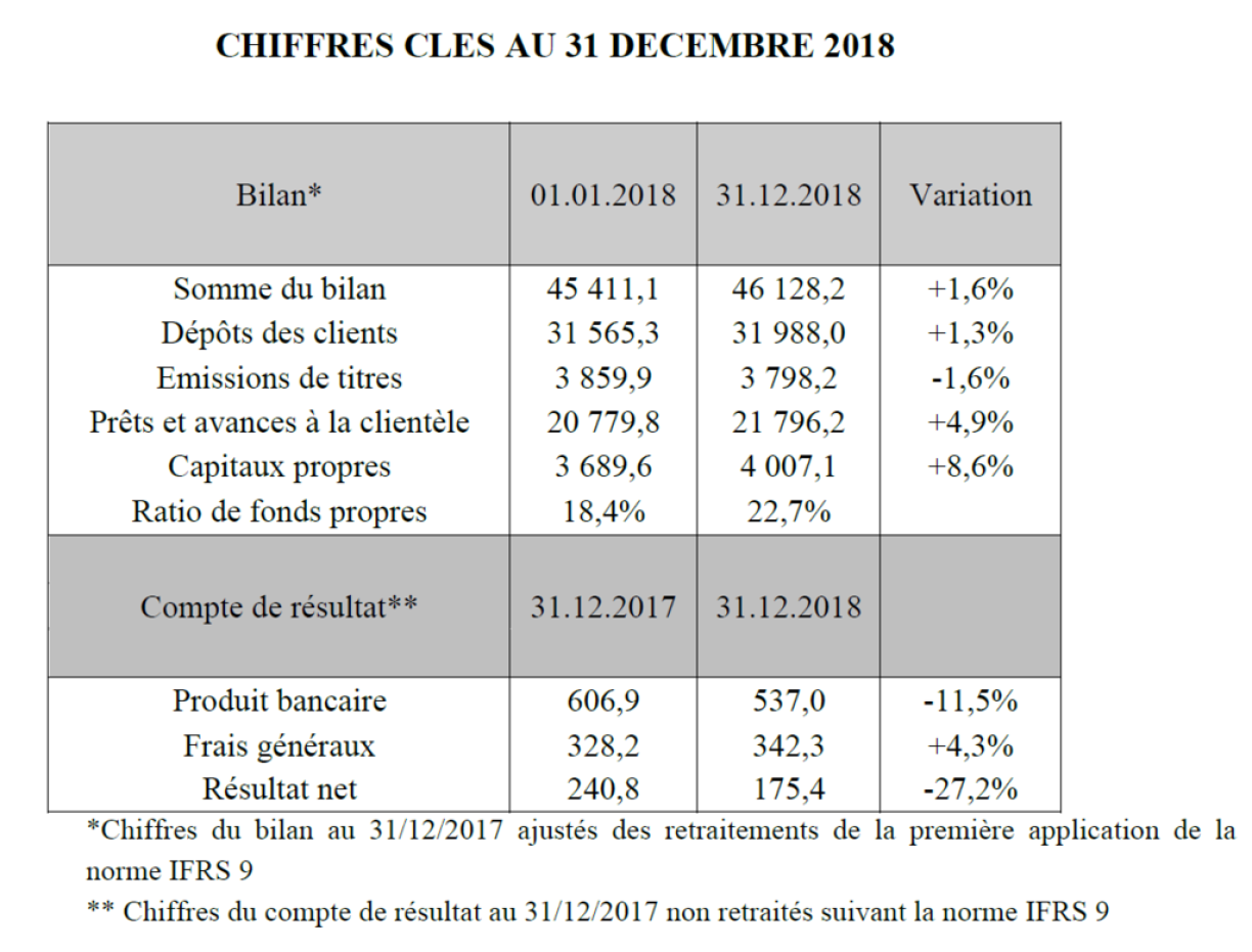 RESULTATS DE SPUERKEESS AU 31 DECEMBRE 2018