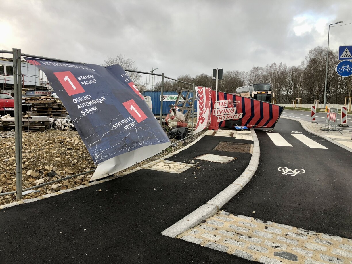 Dem leschte Bilan vum CGDIS no wieren eng 21 Beem ëmgefall a bei zwee Chantiere wieren d‘Clôturë fortgeflunn. D’Diecher vun zwee Haiser goufen ausserdeem beschiedegt. Den ACL réit iwwerdeems dozou, op de Stroossen an dëse méi geféierleche Fuerkonditioune lues ze maachen. Eng Rei Strecke sinn den Ament dann och wéinst Beem blockéiert, déi ëmgefall sinn.