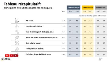 D‘Lëtzebuerger Wirtschaft ass resilient, d‘Reprise läit dëst Joer bei 7 Prozent, d‘Staatsfinanze sinn zolidd, nawell hänkt villes vum weidere Verlaf vun der Pandemie of. Sou kann ee graff d‘Analyse vum Statec resuméieren, deen en Donneschdeg déi nei Note de conjoncture presentéiert huet.