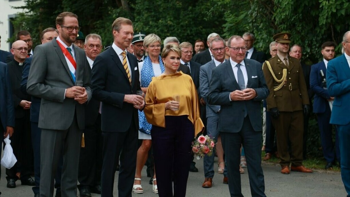 All d’Blécker waren awer haut op Lellgen geriicht, wou de Grand-Duc Henri an d’Grand-Duchesse Maria-Teresa kuerz viru 5 vum Chamberpresident an 1te Bierger a vum Kiischpelter Buergermeeschter a senge Schäffen empfaange gouf.
