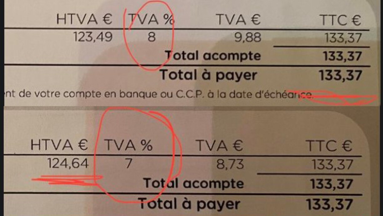 Do koum séier de Gedanken op, dass d’TVA zwar erofgesat gouf, dofir awer de Rechnungsbetrag gehéicht gouf.