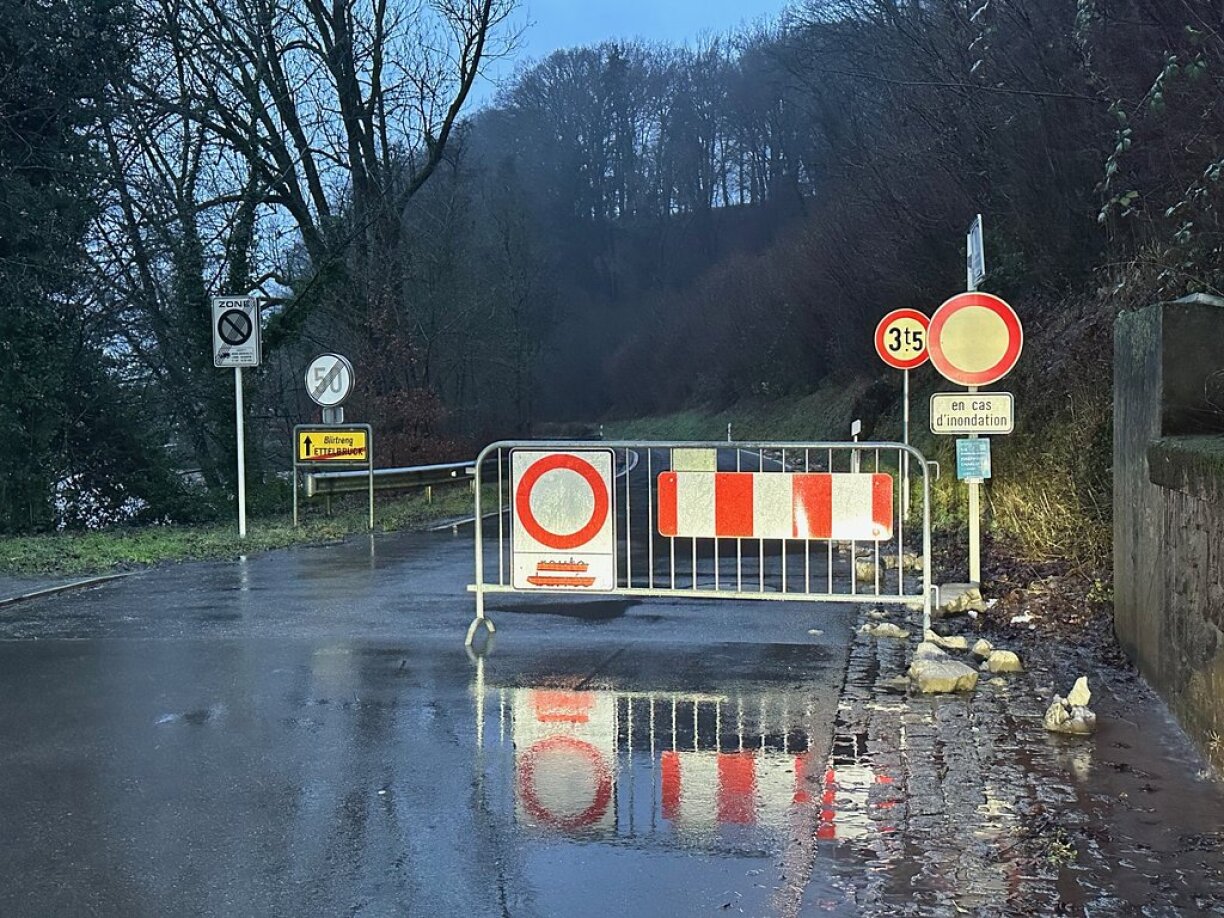 Iwwerdeems ass och den CR345 tëschent Ettelbréck a Biertreng gespaart, well hei d’Strooss plazeweis ënner Waasser steet.