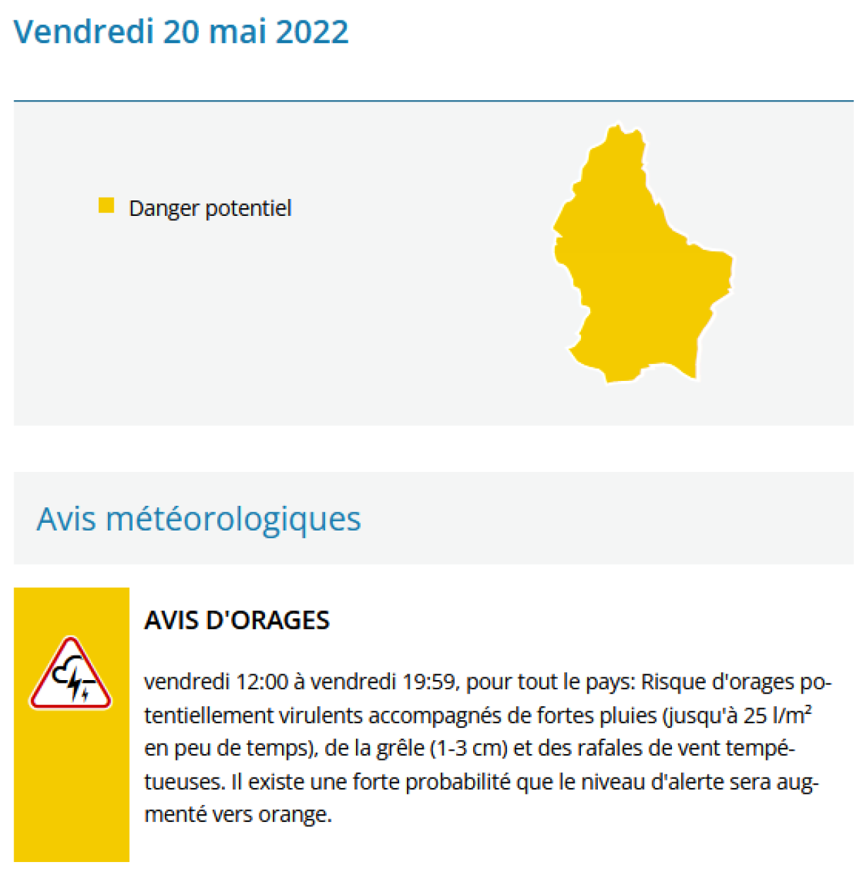 D’Knëppelsteng kënnen tëscht 1 an 3 Zentimeter déck sinn. Wat de Reen ugeet, rechent Meteolux mat bis zu 25 Liter pro m2 bannent kuerzer Zäit.