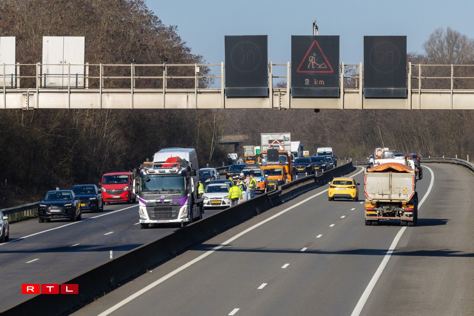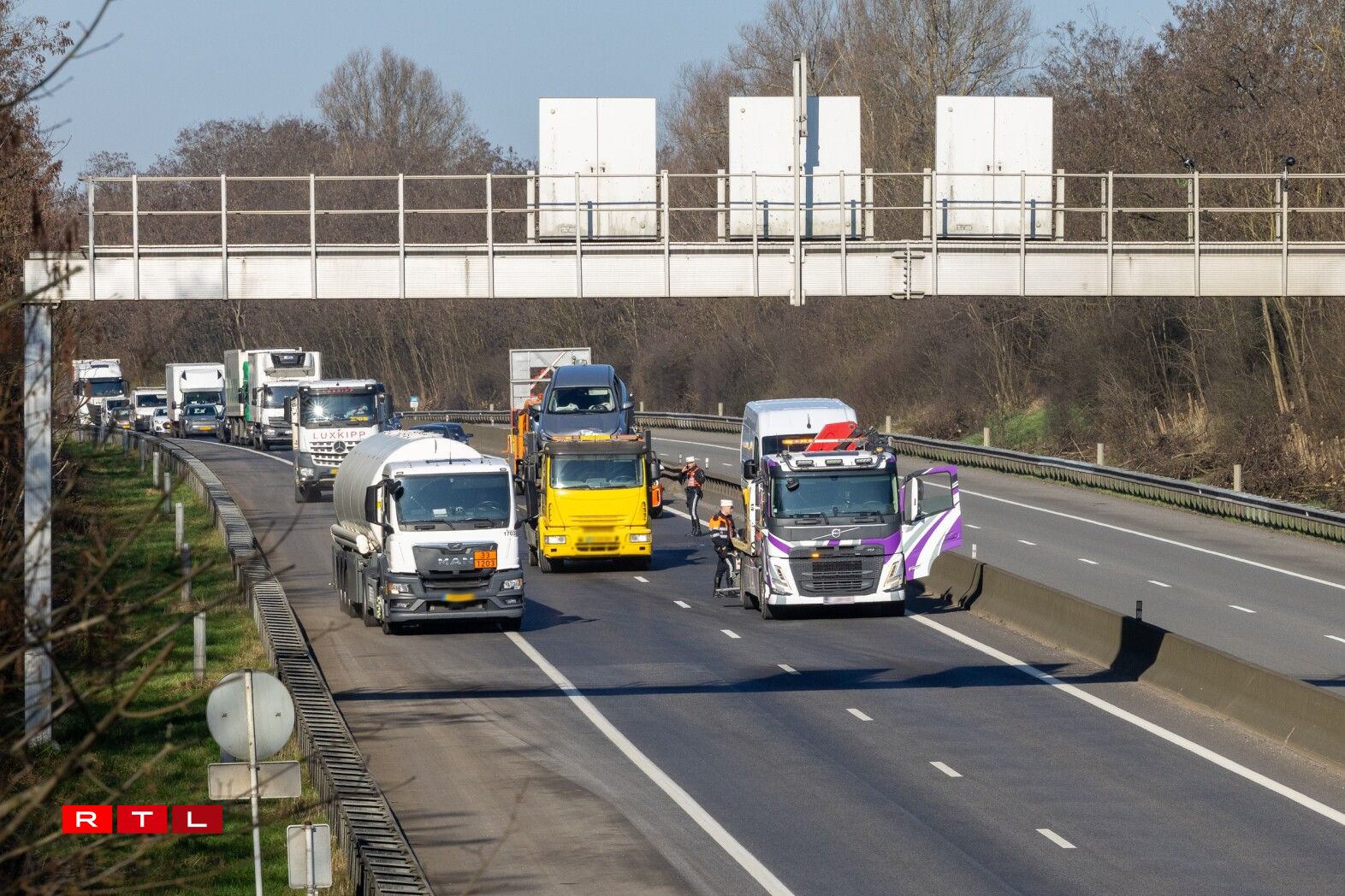 Geschitt ass den Accident tëscht Mamer a Briddel. D’Iwwerhuelspuer ass och bis ewell nach ëmmer blockéiert, de CGDIS ass op der Plaz. Géint hallwer 11 e Mëttwoch de Moien waren et nach ronn 5 Kilometer Stau op där Plaz.