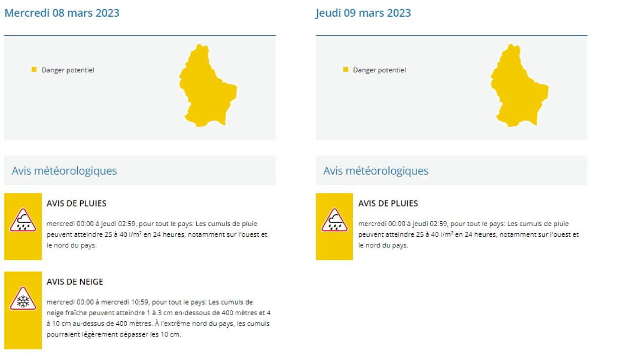 Tëscht Hallefnuecht an 8 Auer moies huet et um Mëttwoch zu Lëtzebuerg geschneit. Wärend fir de Süden 1 bis 2 Zentimeter virausgesot goufen, konnten am Norde 4 bis 8 Zentimeter falen.