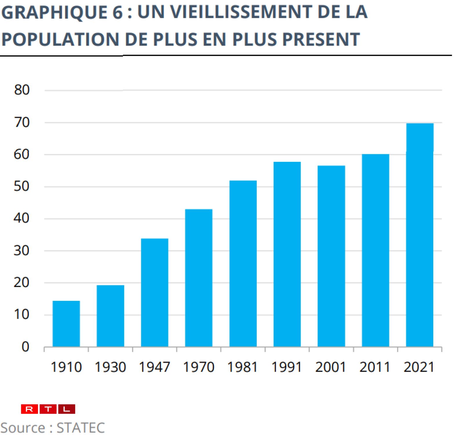 D’Vollekszielung vun 2021 weist, dass et liicht méi Männer ginn, anescht wéi dat nach 2011 de Fall war. Doriwwer eraus gëtt d’Populatioun méi al.