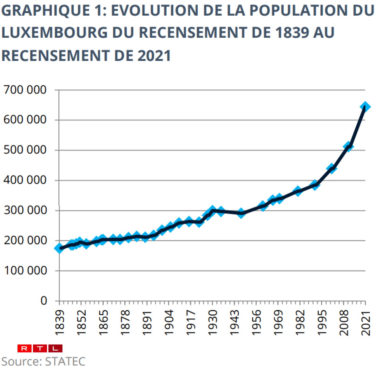 D'Populatioun zu Lëtzebuerg ass vun 2011 bis 2021 ëm 25 Prozent gewuess