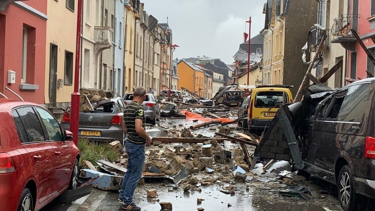 Et war spéiden Nomëtten, wou déi éischt Appeller an der Redaktioun agaange sinn. Zu Käerjeng a Péiteng hätt et e schlëmme Stuerm ginn. Och vun Tornado war rieds. Net laang huet et gedauert, bis déi éischt Videoe vum Ausmooss erakomm sinn. Tatsächlech war op enger vun den Opnamen e klengen Tornado ze gesinn, dee sech op en Haus zoubeweegt huet. Op enger anerer ass aus engem Auto eraus gefilmt ginn. Géigestänn sinn an d’Pare-Brise geflunn, dat ganzt Gefier gouf vum Stuerm gerëselt.