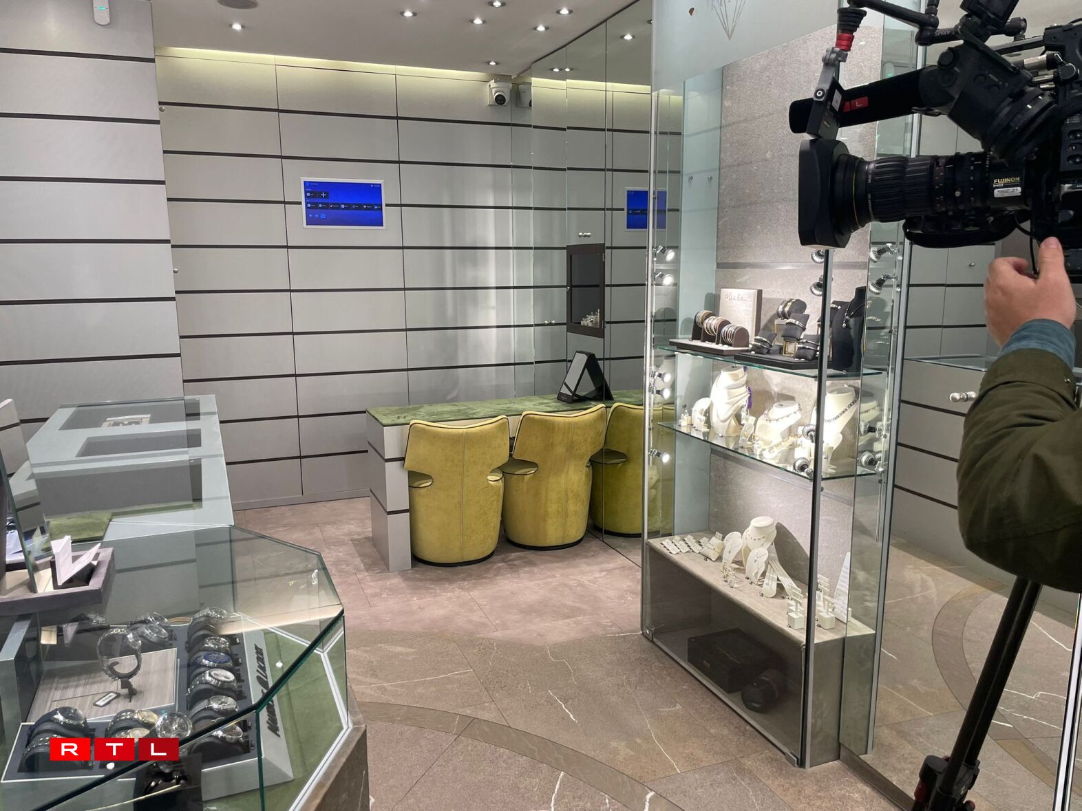 Scho vun Ufank un hätt sech den Täter verdächteg verhalen, hätt d’Vendeuse als éischt aus dem Geschäft rausgeruff fir sech eppes an der Vitrinn unzekucken, wollt sech vill eenzel Bijoue weise loossen an ass hir an all Eck vum Buttek nogaangen. “E Client mat Respekt waart natierlech un der Théik a geet net nach mam Vendeur bis hannert d’Théik”, zielt eis de Jeff Costa, ee vun de Gerante vun der Bijouterie. Hien hat vu sengem Büro aus zoufälleg den Opnamen op der Iwwerwaachungskamera nogekuckt an hat direkt e schlecht Gefill: