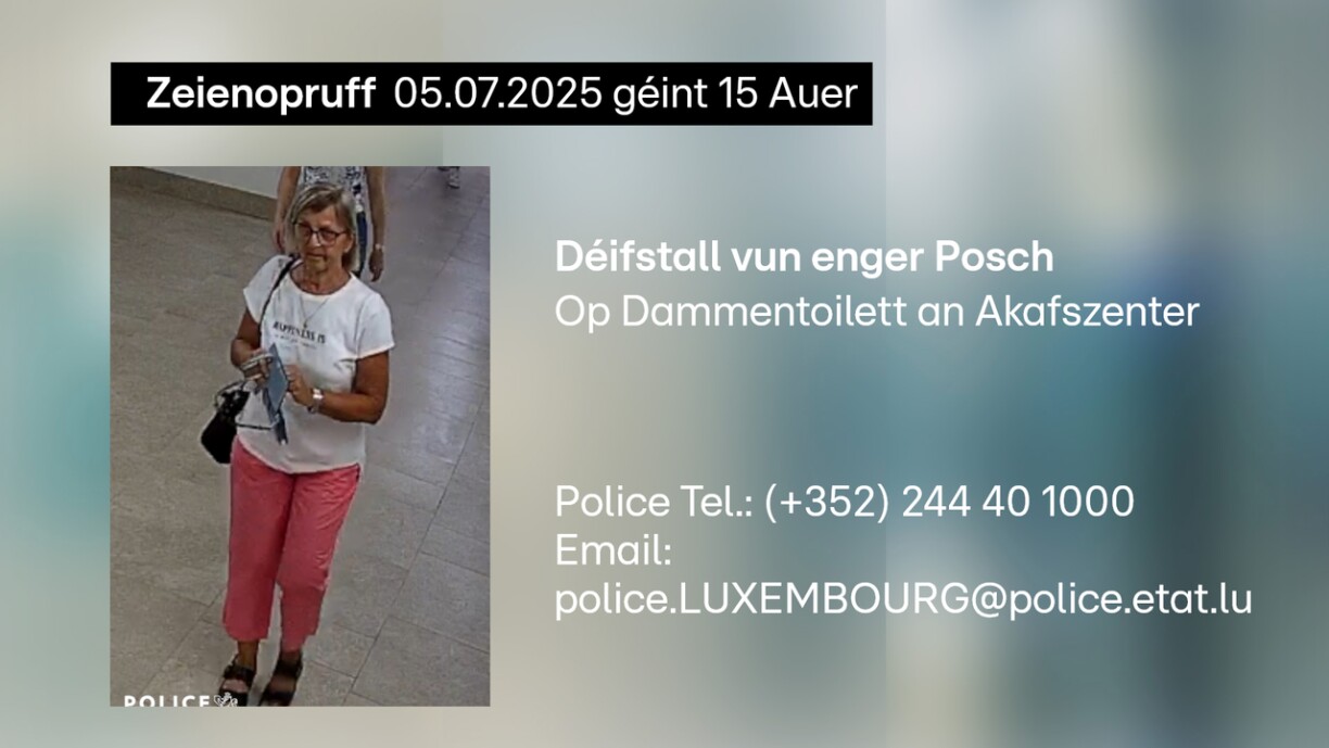 An deem Zesummenhang sicht d’Police no Informatioune zu der Persoun, déi een op der Foto an dësem Artikel gesäit.