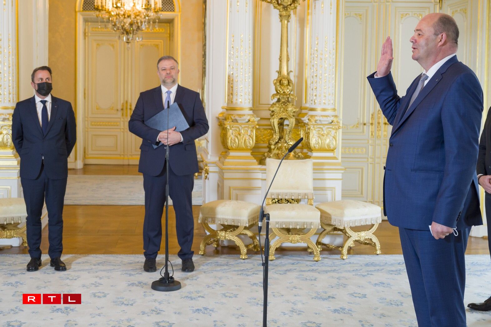 De Regierungschef Xavier Bettel hat déi 3 nei Ministeren begleet. Op Nofro hin huet hie confirméiert, dass et dem Grand-Duc Henri nach e Stéck besser geet ewéi gëschter. Den Haff hat jo scho matgedeelt, de Staatschef hätt wéineg Symptomer vum Covid19.