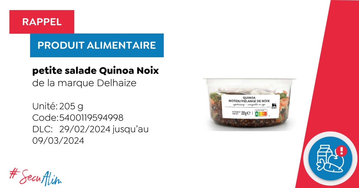 Wéi d’Administration luxembourgeoise vétérinaire et alimentaire matdeelt, gouf d’kleng Zalot mat Nëss a Quinoa aus de Regaler vum Delhaize geraumt.