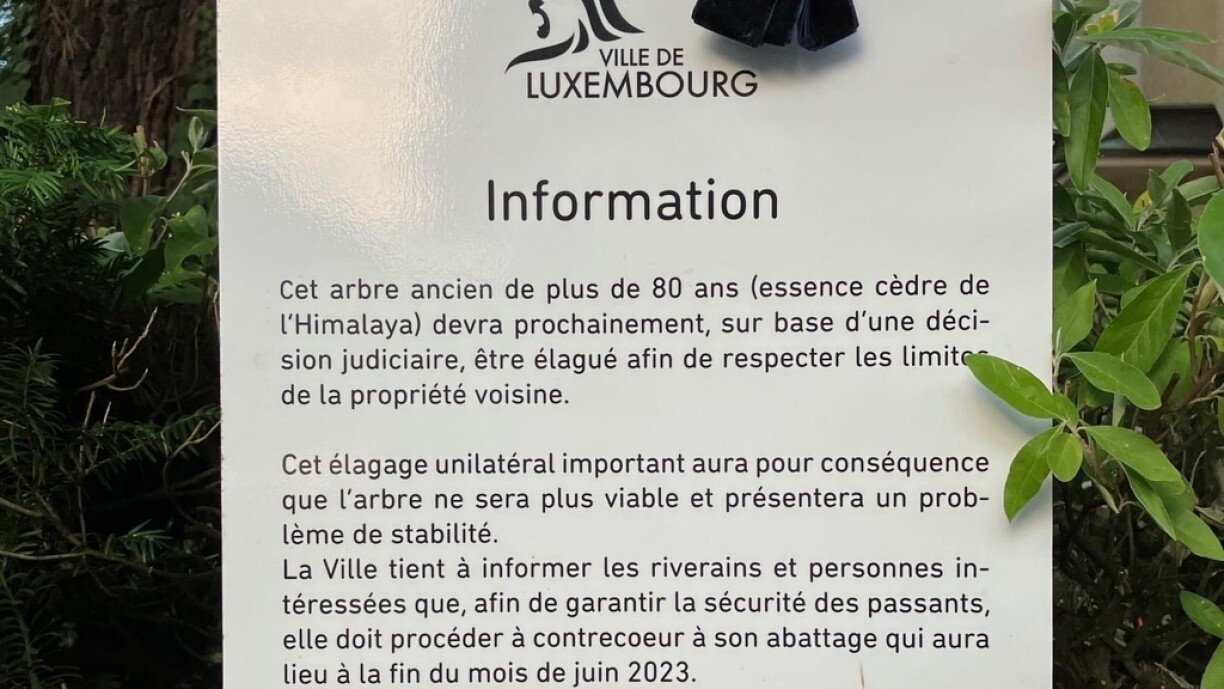 Zanter ronn 80 Joer stoung um Belair eng sougenannten Himalaya-Zeder, Fachbegrëff Cedrus Deodara. Ma Enn Juni waren d’Deeg vum Bam gezielt an e gouf ewechgeholl. Op Nofro bei der Stater Gemeng war et d’Erklärung, datt de Proprietär vum Grondstéck niewendrun d’Gemeng reegelméisseg kontaktéiert hätt, fir d’ Äscht vum Bam liicht zeréckzeschneiden. Dat hätt een och gemaach.