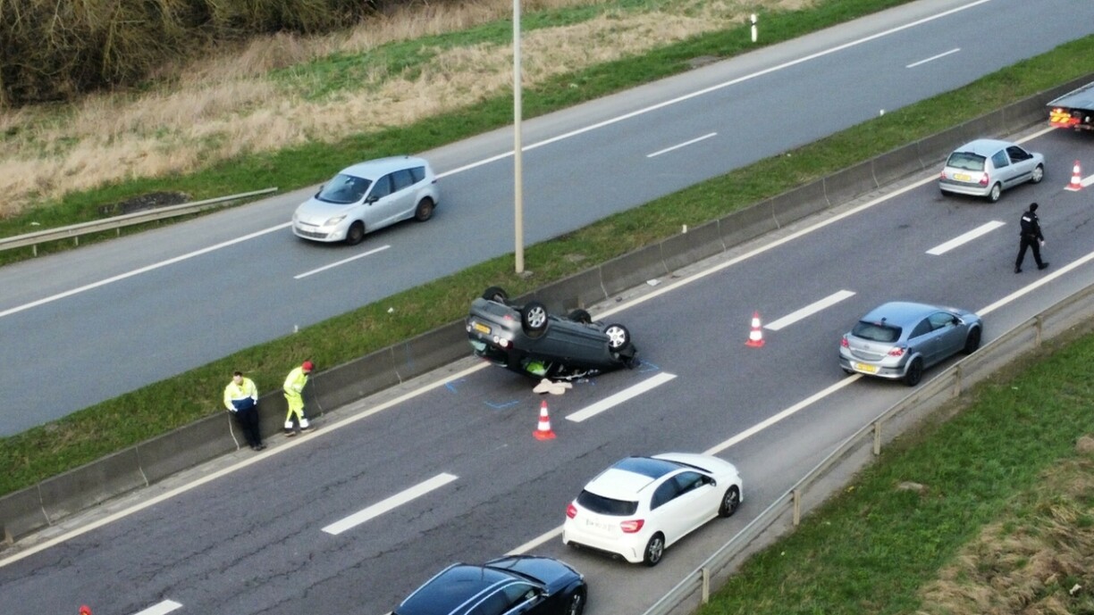 Wéi d’Police schreift, hat sech op der A13 op der Héicht vun der Ausfaart Nidderkäerjeng en Auto iwwerschloen, woubäi eng Persoun blesséiert gouf. D’Automobilistin vum accidentéierte Won koum liicht verletzt fir eng Kontroll an d’Spidol.