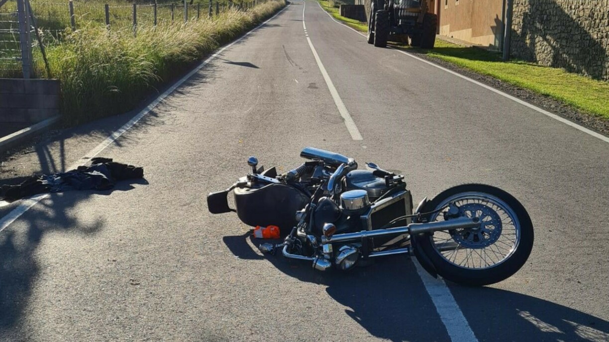 Tëscht Wecker an dem Schorenshaff huet de Motocyclist géint 18 Auer d’Kontroll iwwer säi Gefier verluer, ass doropshi gefall a gouf widder e Pneu vun engem Trakter geschleidert, dee laanscht d’Strooss stoung.
