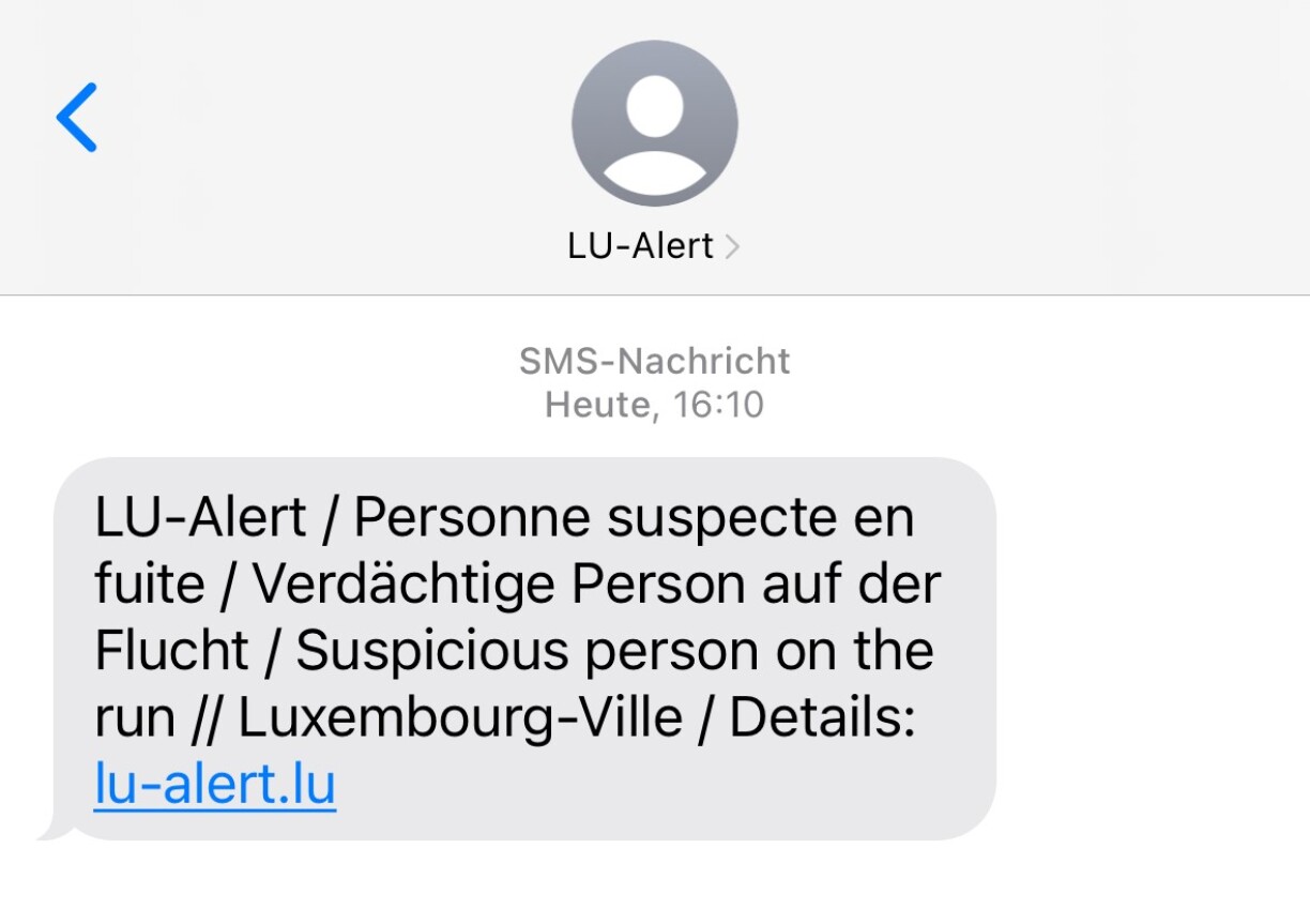 Et war am Nomëtteg och eng LU-Alert zu der Sich no der verdächteger Persoun erausgaangen, dat mat der ‘“Wachsamkeitsstufe Orange”.
