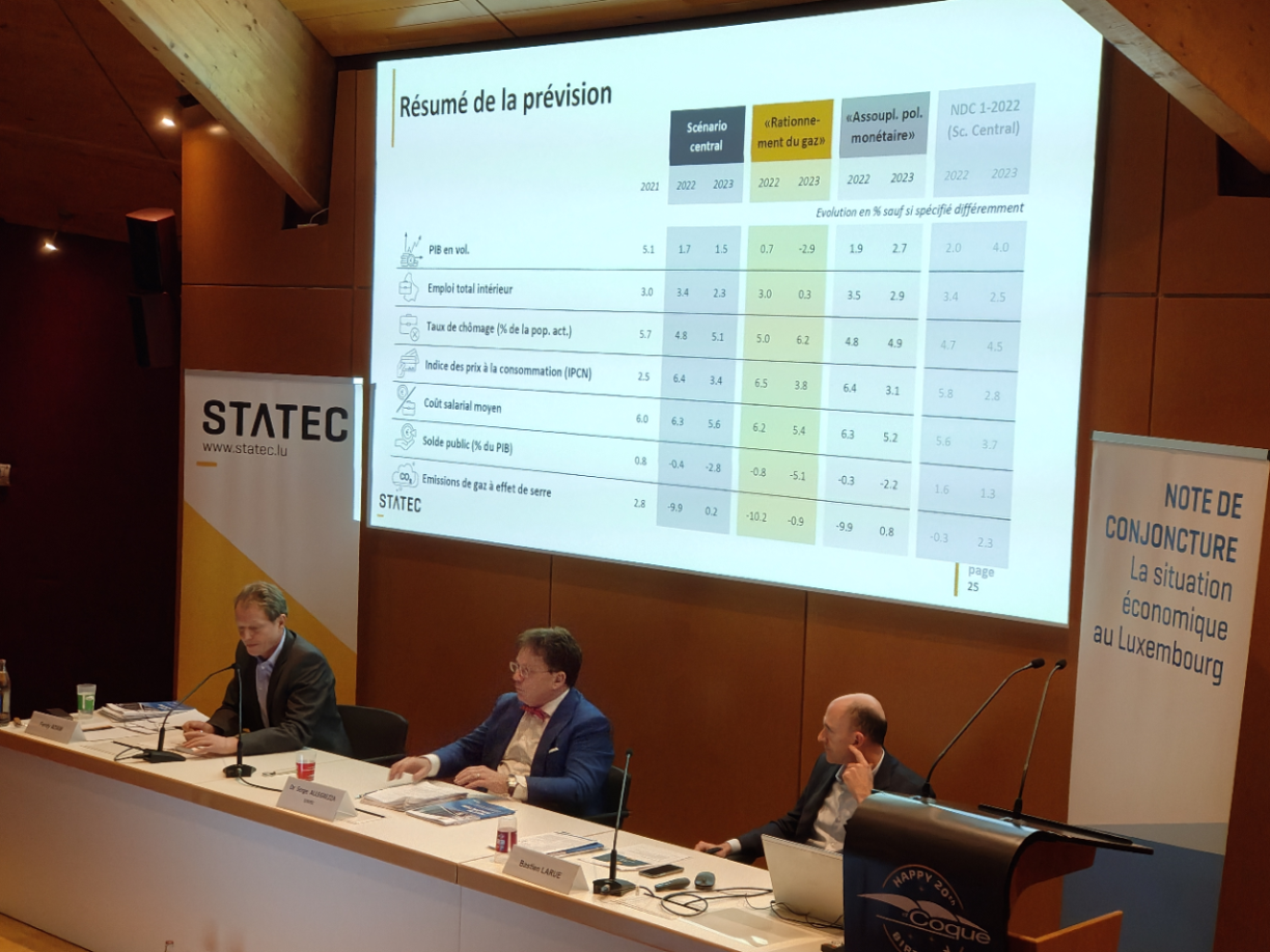 D’Tripartite-Mesurë géingen dem Statec no d’Kafkraaft stäerken an d’Aiden un d’Menagen an Entreprisë géingen ongeféier 2 Prozent vum PIB ausmaachen. Eng Rezessioun géing verhënnert ginn, mä d’wirtschaftlech Aktivitéit wier duerch d’Inflatioun, respektiv Energiekris kloer gebremst a wäert dëst an nächst Joer ënner 2 Prozent leien.