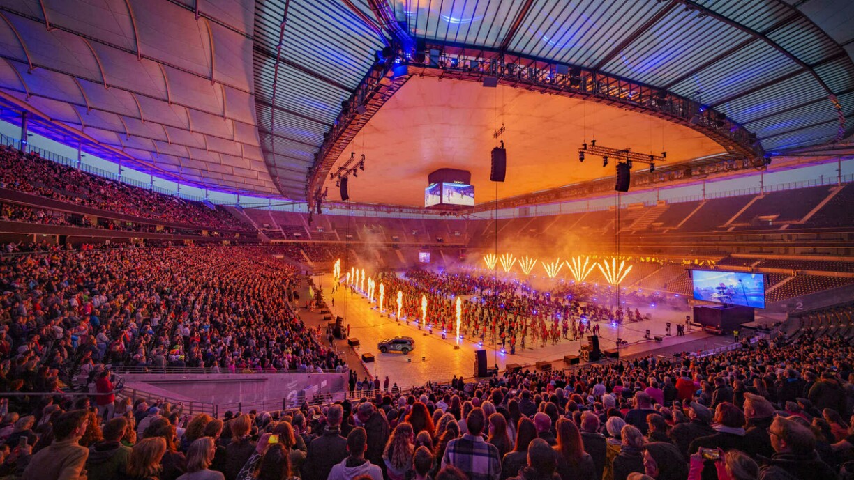 Bis ewell haten dee Rekord 1.112 Museker gehalen, déi 2023 zu Wien beienee komm sinn. Zu Frankfurt waren d’Museker opgefuerdert ginn, mat den ënnerschiddlechsten Instrumenter an de Waldstadion ze kommen, wat déi iwwer 1.200 dunn och gemaach hunn. Mat de verschiddensten Instrumenter goufen Hits vu Robbie Williams, Tina Turner an anere live op der Bün gespillt.