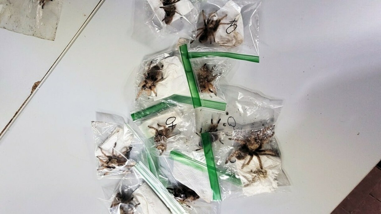 Wéi si d’Wallis vun engem 46 Joer ale Mann, deen aus dem US-Bundestaat Arizona op Köln gereest war, kontrolléiert hunn, hu si insgesamt ronn 640 Spannendéieren an Insekte fonnt. Dorënner 190 Vugel-, Wollefs- a Sprangspannen, iwwer 430 Skorpiounen a ronn 20 Honnertféissler a Käfferen.