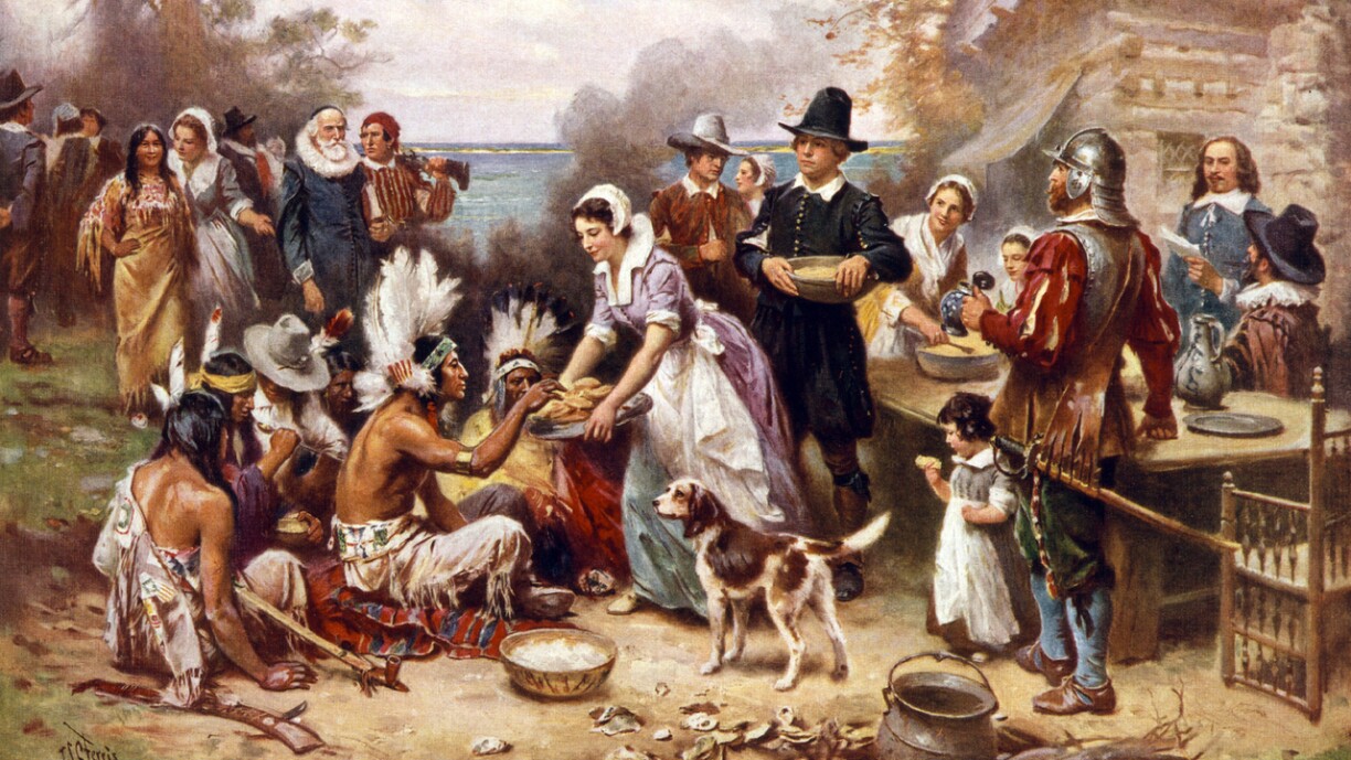 Dem Edward Winslow no, en Aenzeien, deen d’Faart iwwerlieft an alles dokumentéiert huet, hunn déi amerikanesch Urawunner mat dësem Fest d’Enn vun der Recolte gefeiert an der Natur “Merci” gesot fir alles, wat si hinnen dëst Joer offréiert huet. Fir d’Englänner, déi schonn am Laf vum Joer 1621 hei ukoumen a scho Geschäfter mat der indigeener Populatioun gemaach hunn, war et och e Fest, fir hiert Iwwerliewen ze feieren. Nieft dem Iesse goufe wärend dësen Deeg och Spiller gespillt, eng Zort Militärparad ofgehalen an et koum zu diplomatesche Gespréicher tëscht de Kolonisten an den Urawunner.