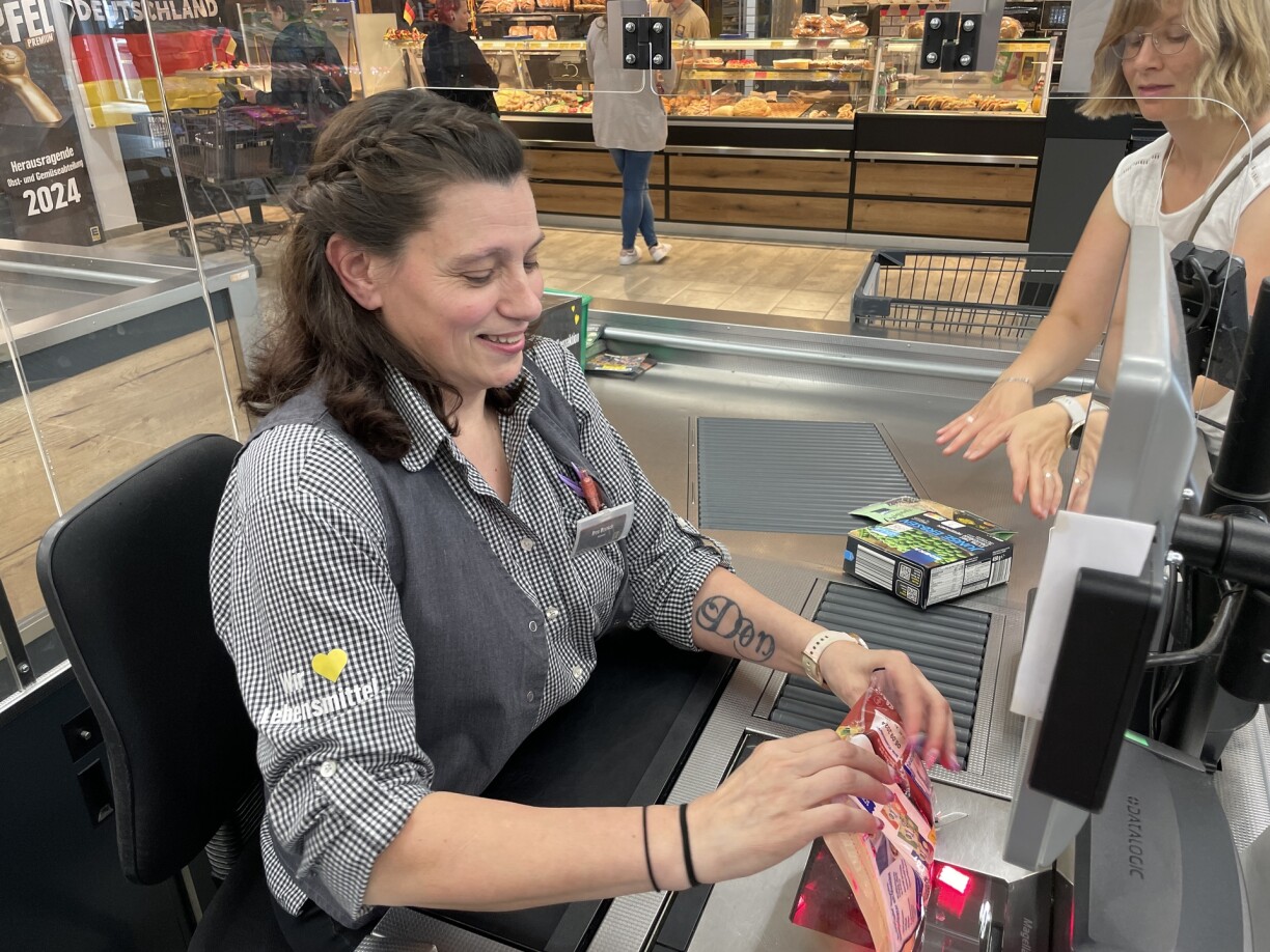 D’Myriam Bausch ass zefridden op hirer Aarbechtsplaz. “Ech hat nach ni e e bessere Chef”, seet si a präziséiert am Laachen, datt dëst keng Ausso ass, fir sech anzeschläimen, mä si dat ganz eescht mengt. An och d’Clientë si frou mat hir. “Ech soen ëmmer ‘Moie Madamm, Moie Monsieur’ an dono lauschteren ech dann, ob ech Lëtzebuergesch oder Däitsch mat hinne schwätzen”. Vill Clienten awer mengen, si géif d’Platt, also den Dialekt aus der Géigend, mat hinne schwätzen, deen deelweis ganz änlech kléngt, wéi eist d’Lëtzebuergescht. “Da soen ech hinnen awer ëmmer, ‘Nee, dat ass kee Platt, dat ass Lëtzebuergesch”. Wärend si sech am Grand-Duché nach heiansdo opgereegt huet, datt si iwwerall Franséisch muss schwätzen, ass si haut emol frou, frankophone Clienten ze hunn. “Am Franséischen hunn ech quasi keen Accent, well mir dat jo als Lëtzebuerger gewinnt sinn, ze schwätzen. Mä mäin Däitsch ass wuel katastrophal”, seet d’Myriam a laacht driwwer.